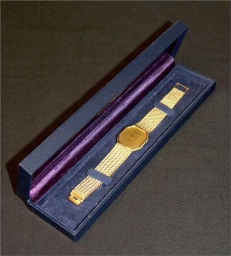 Montre-bracelet homme en or l8 cts, signée BAUME ET MERCIER GENEVE, mouvement quartz, neuve avec box, années 1970