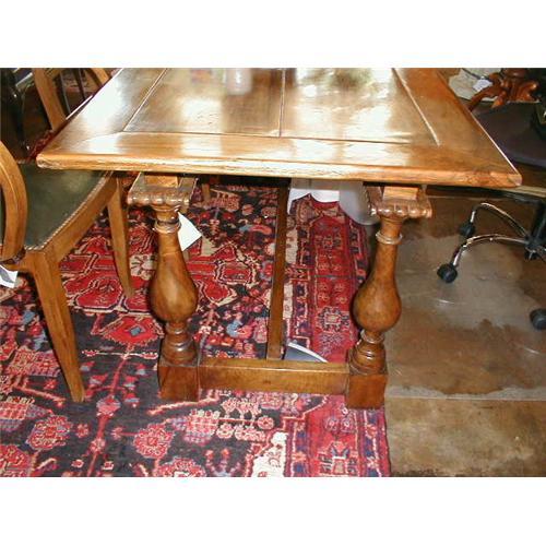 Beautifully grained walnut writing table from Spain.Solid walnut turned legs with interesting carved details and a hidden large pencil drawer make this a rare find. Matched panels with matching patching. Please request photos and email questions.