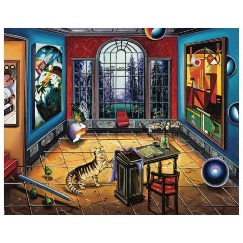 "Writing to Chagall" is a limited edition Giclee on Canvas by Alexander Astahov. The piece is numbered, hand siged by the artist, and come with a letter of authenticity. Measures approximately 24" x 30".