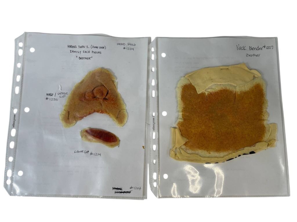 Original facial appliances (painted unused backups) made for "Brother", played by Clint Carleton in the Joe Lynch directed slasher film 'Wrong Turn 2: Dead End (2007), where a group of reality show contestants find themselves fighting for their survival against a family of hideously deformed inbred cannibals who plan to ruthlessly butcher them all.