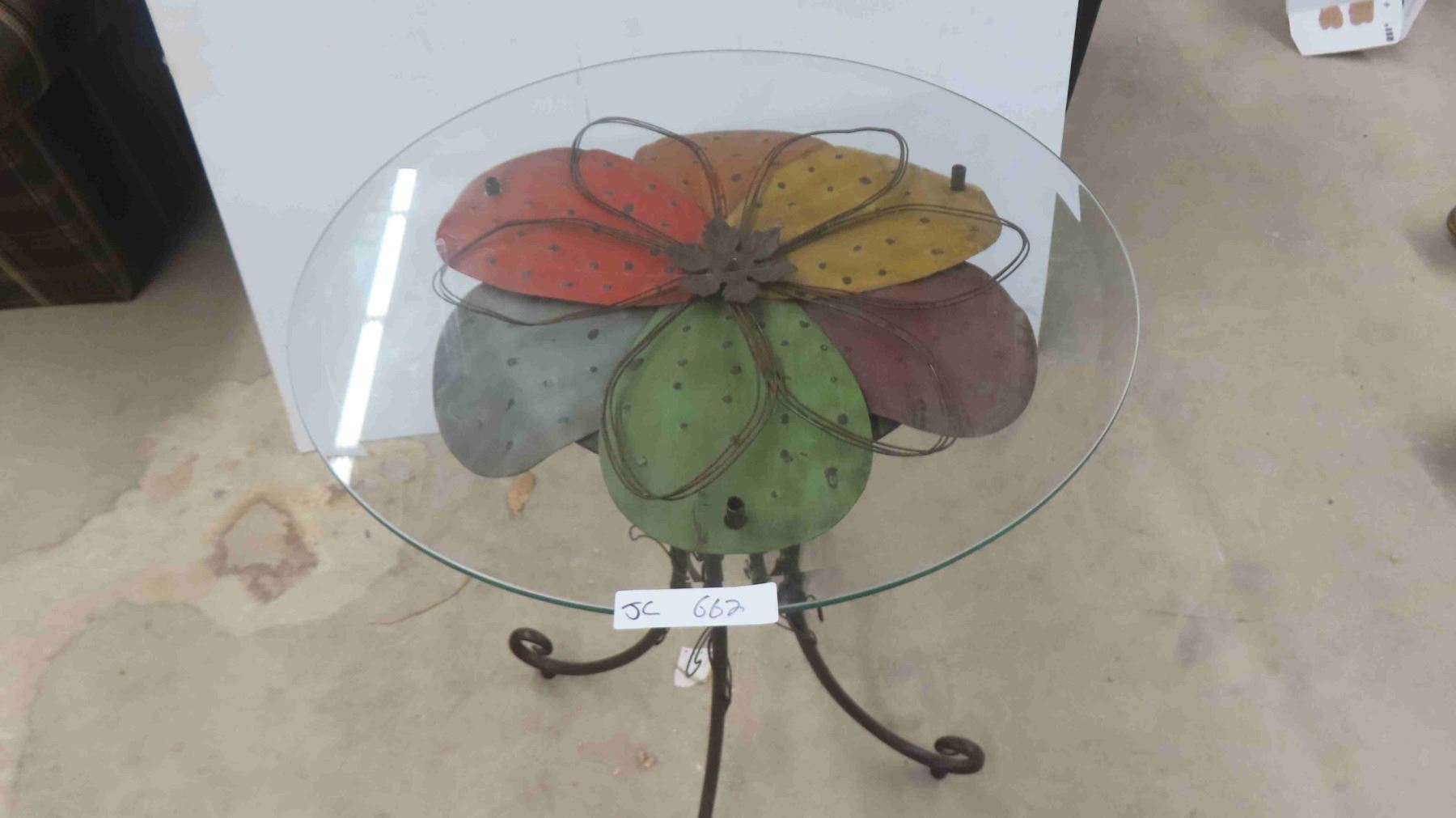 Wrought Iron Bistro Table with Glass Top 30'' H x 24'' Across - Quite Decorative