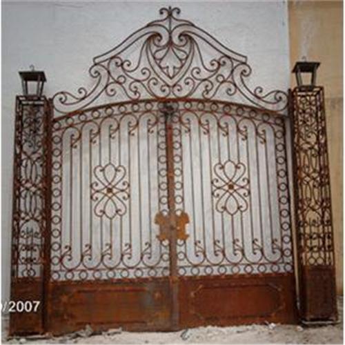 The double entry gates are made of solid wrought iron. Heavy welded.
