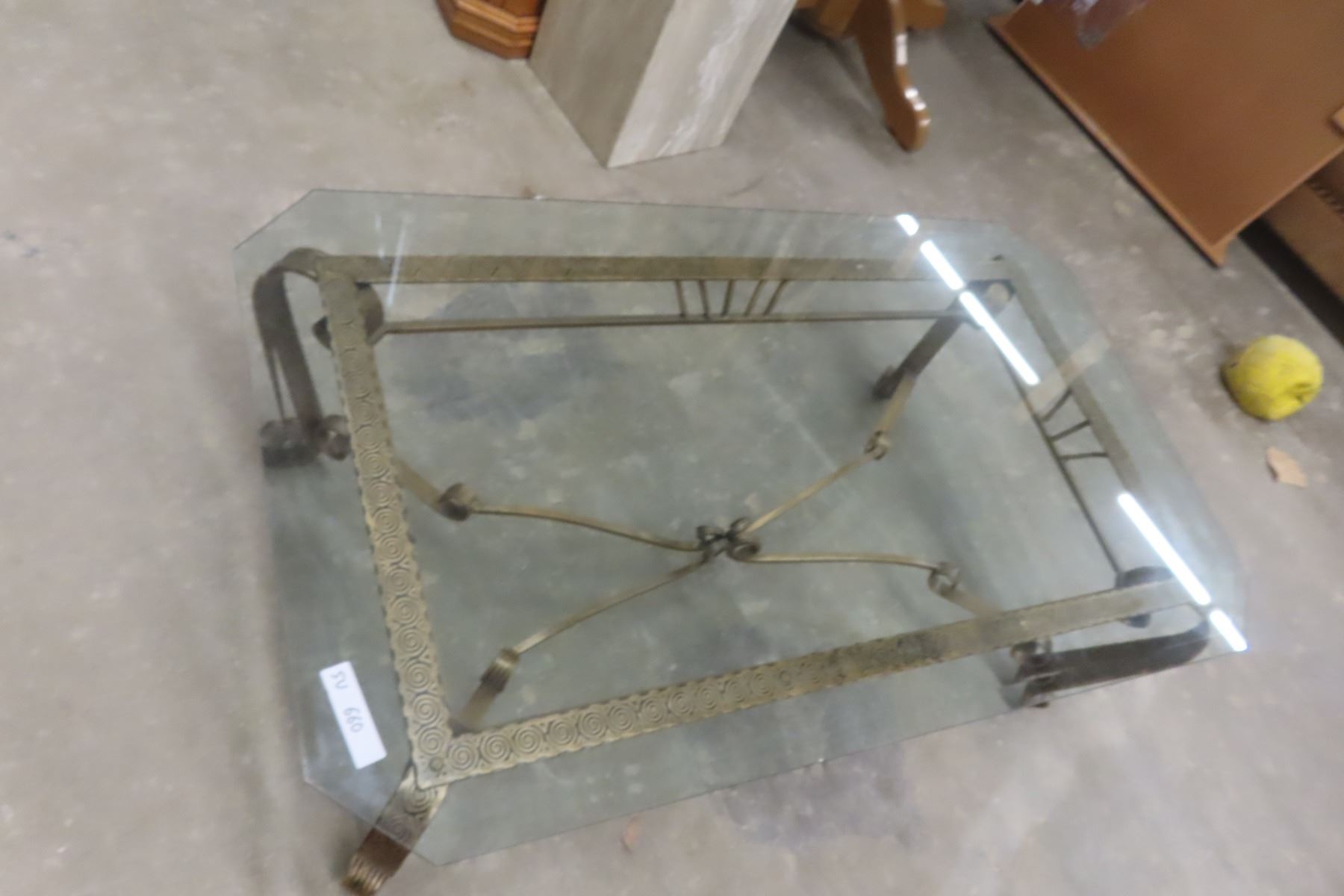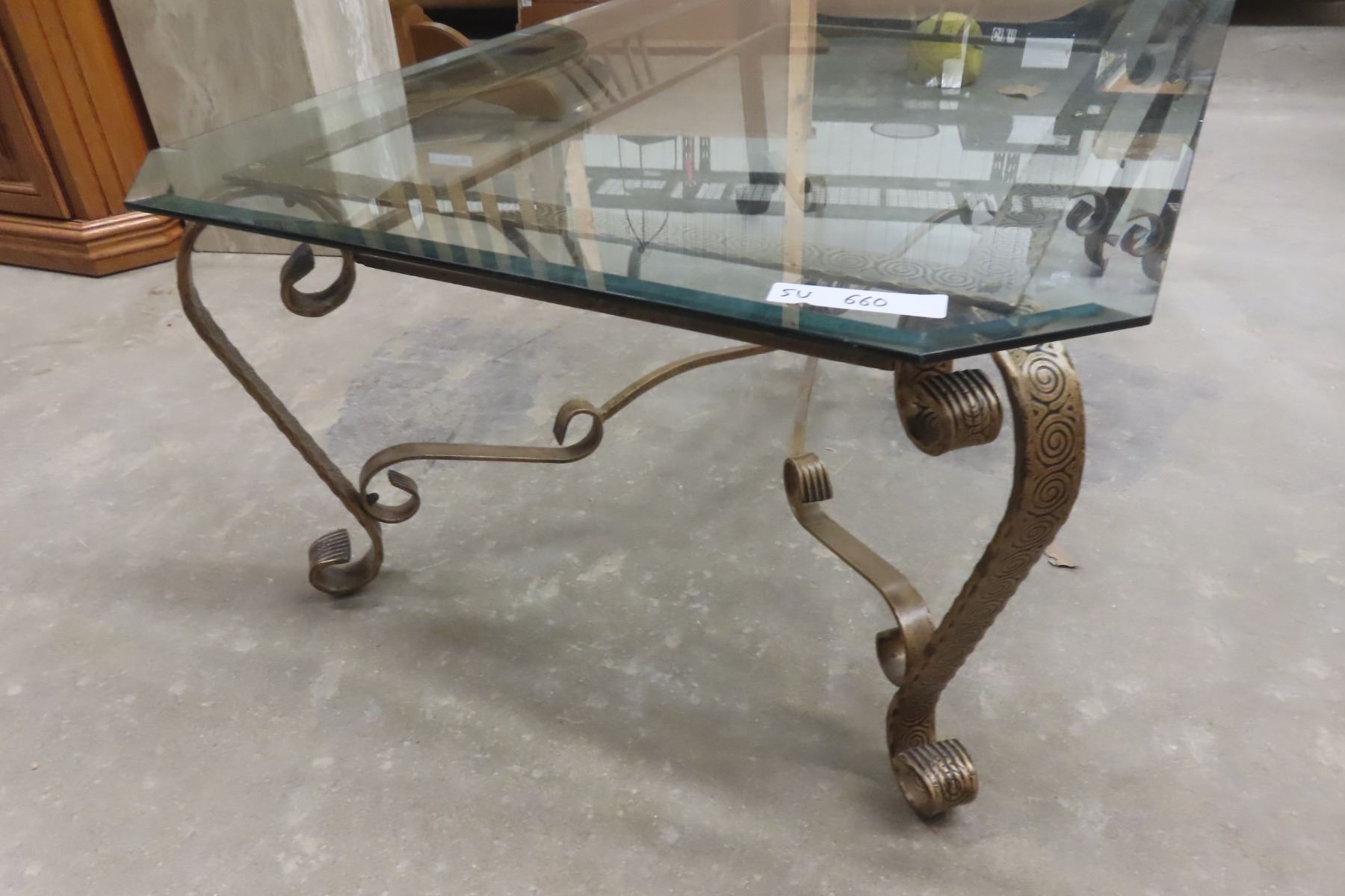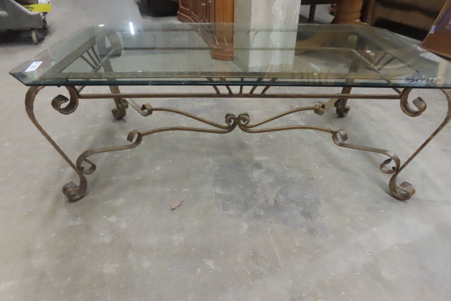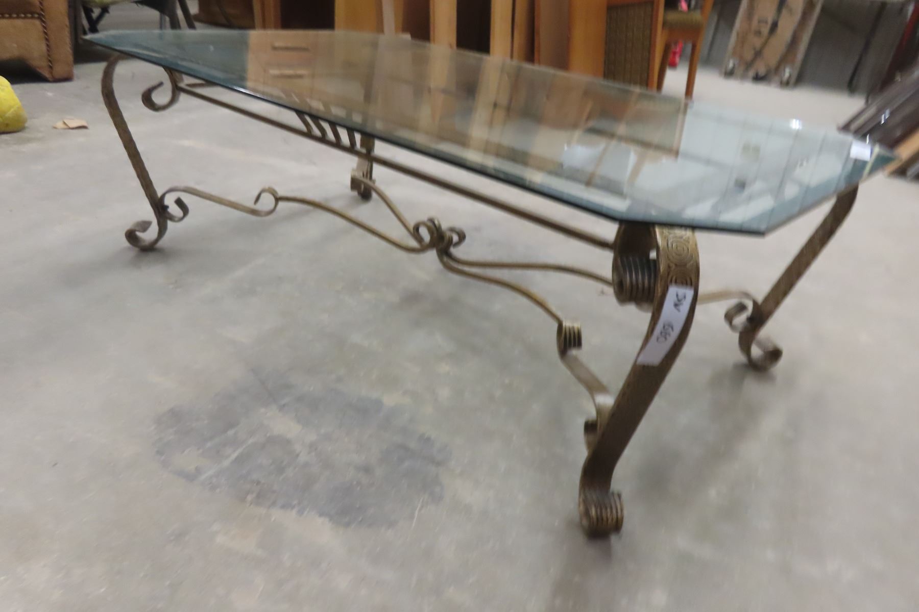 Wrought-Iron and Glass Coffee Table, 16" x 49" x 29"
