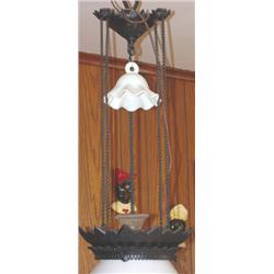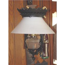 Wrought iron hanging store lamp. Measures approx. 37 1/2" from top to bottom.