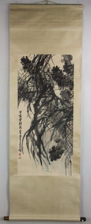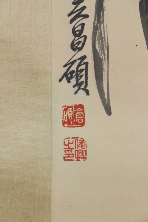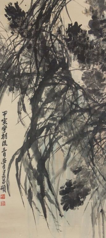 Painting of trees; Chinese ink and watercolour on paper; hanging scroll; signed Wu Chagnshuo (1844-1927); inscribed with 2 artist seals; 106cm x 48.5cm