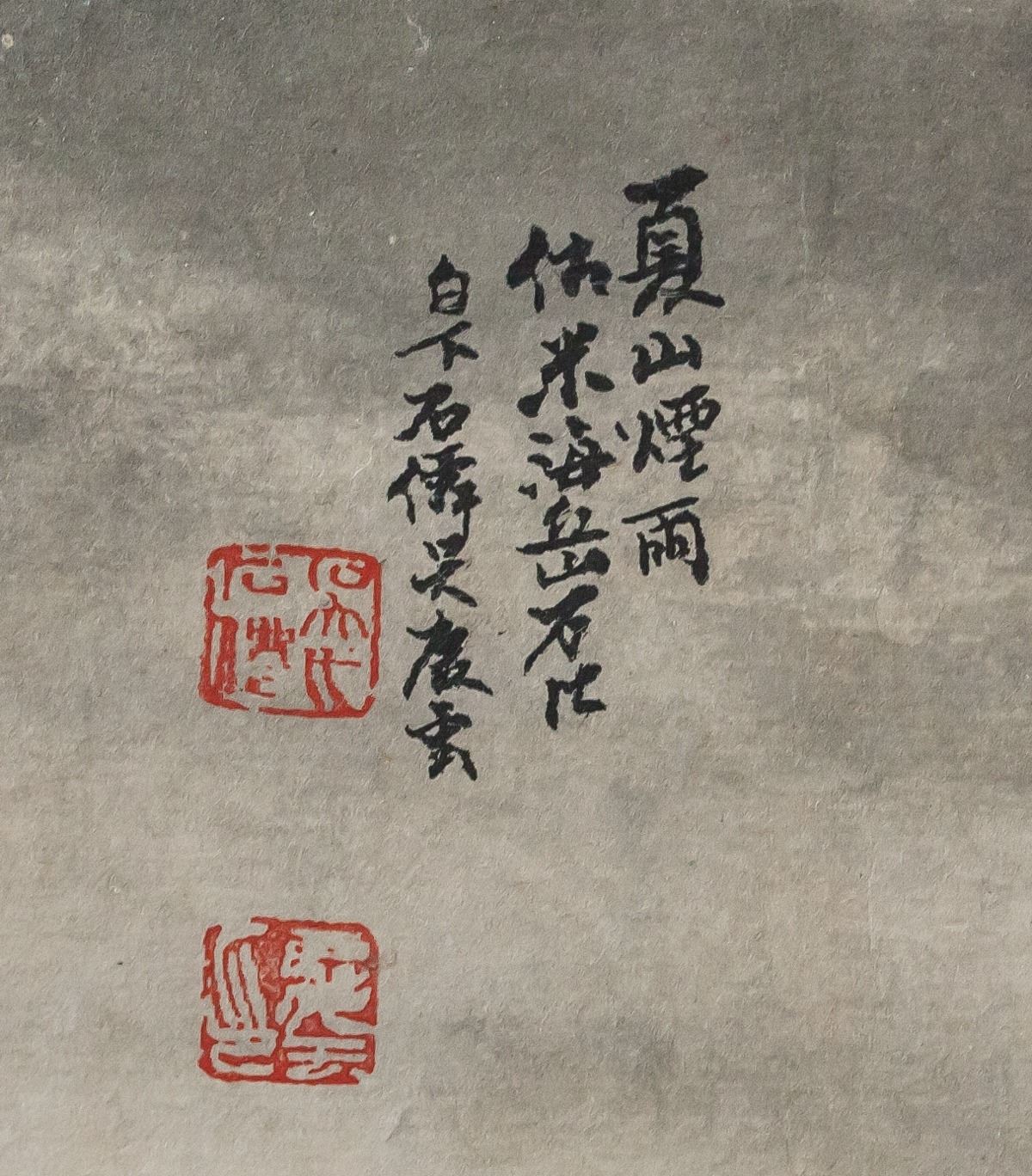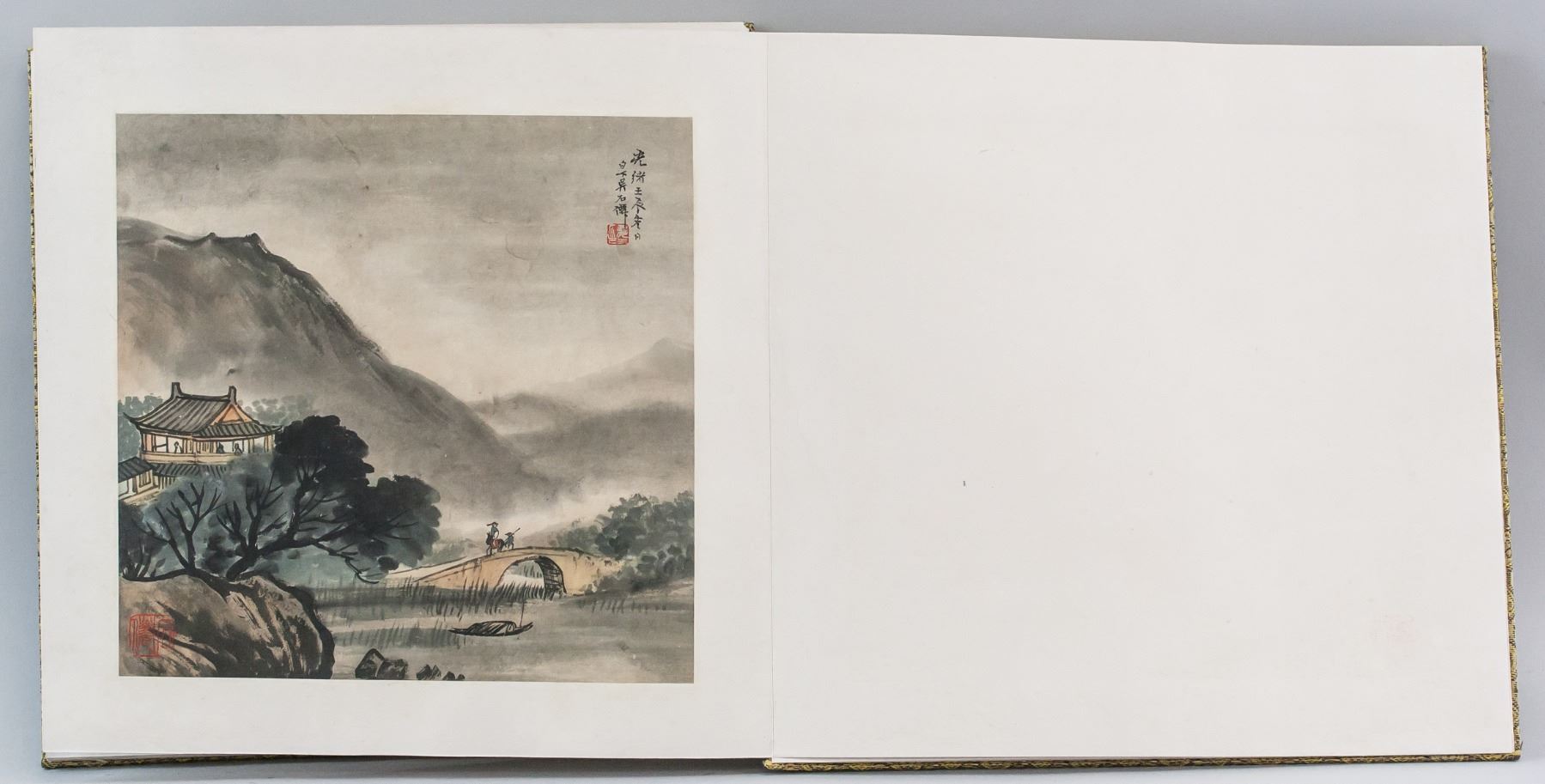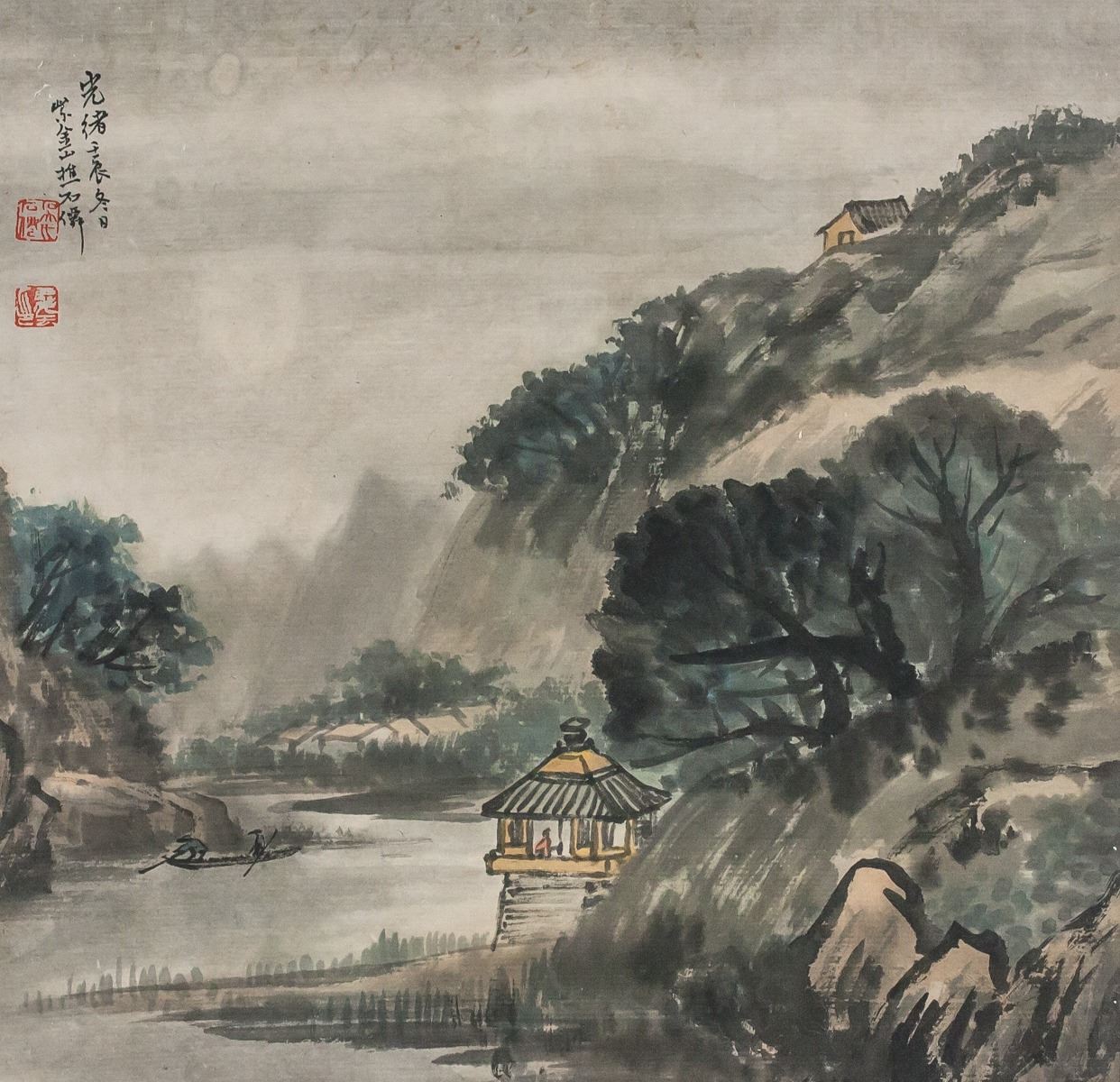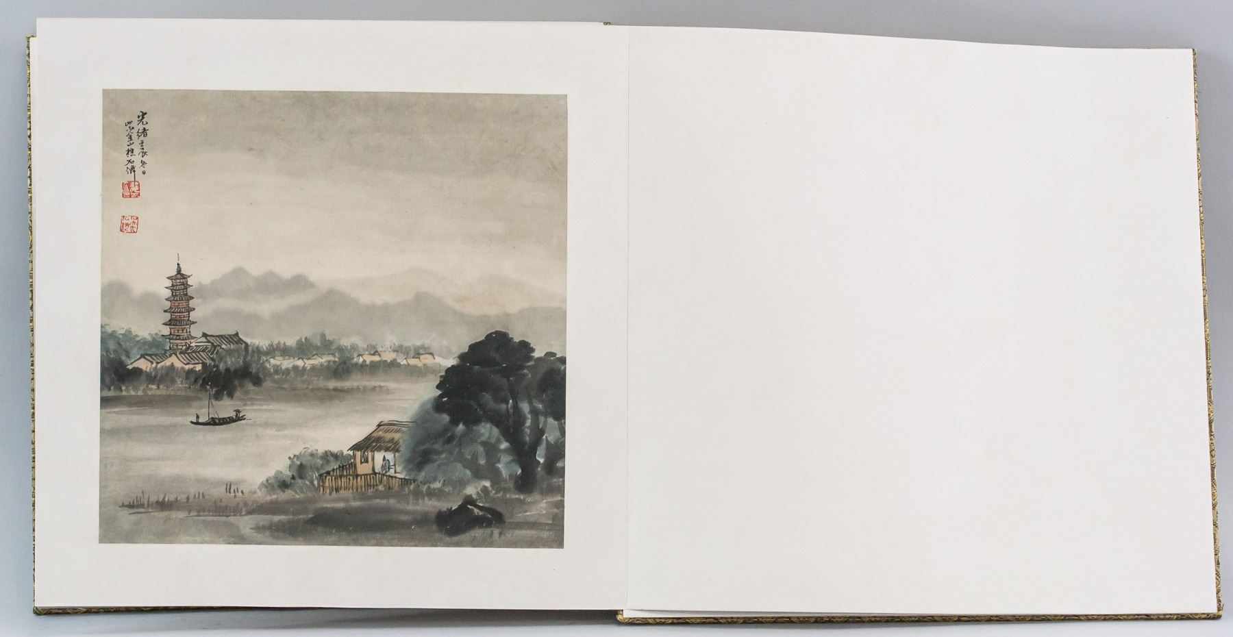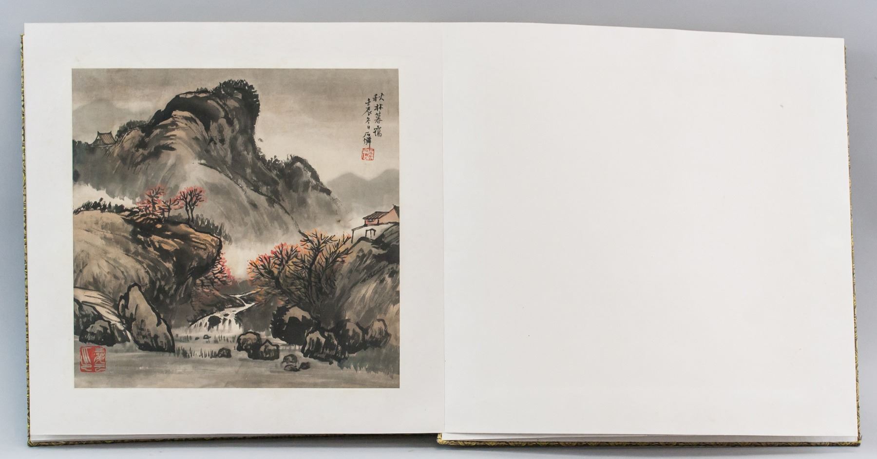 Ink and watercolor on paper booklet. Featuring mountainous landscape. Signed Wu Qingyun (18th Century, Chinese), inscribed wit artist seals. 32 x 32 cm