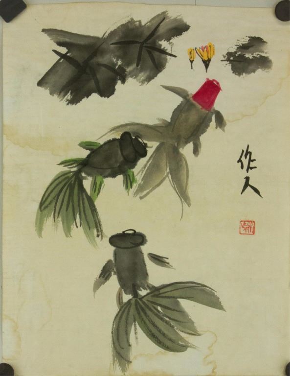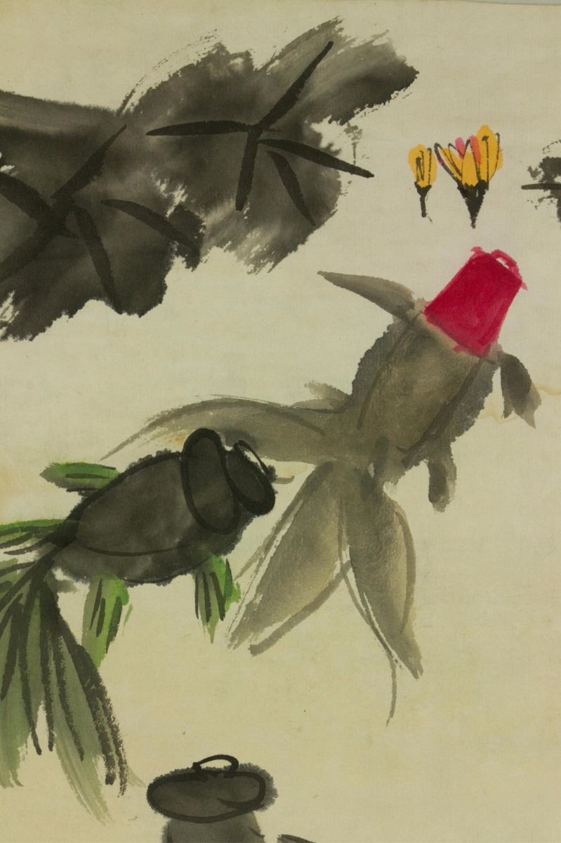 Gold fishes; Chinese ink and watercolour on paper; signed Wu Zuoren and inscribed with one artist seal; 35 cm x 28 cm