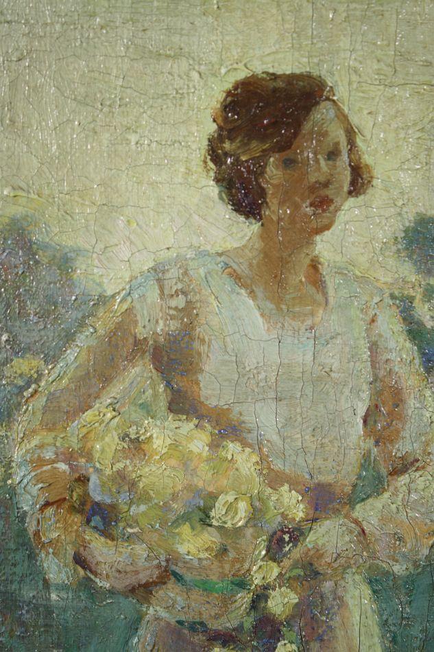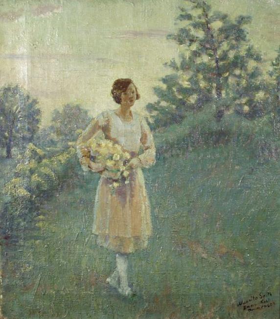 Wuanita Smith (American, 1866-1959) Emma Kohl, Primroses, Oil on canvas,