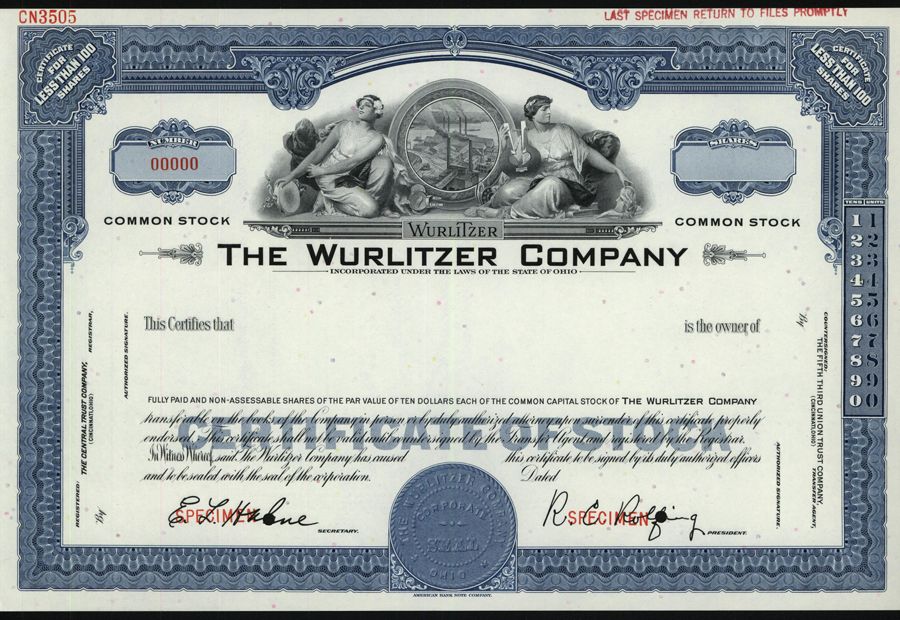 Ohio, 19xx, Specimen Stock, Black on blue border and underprint, Vignette of factories flanked by two allegorical women, VF-XF condition, ABNC.
