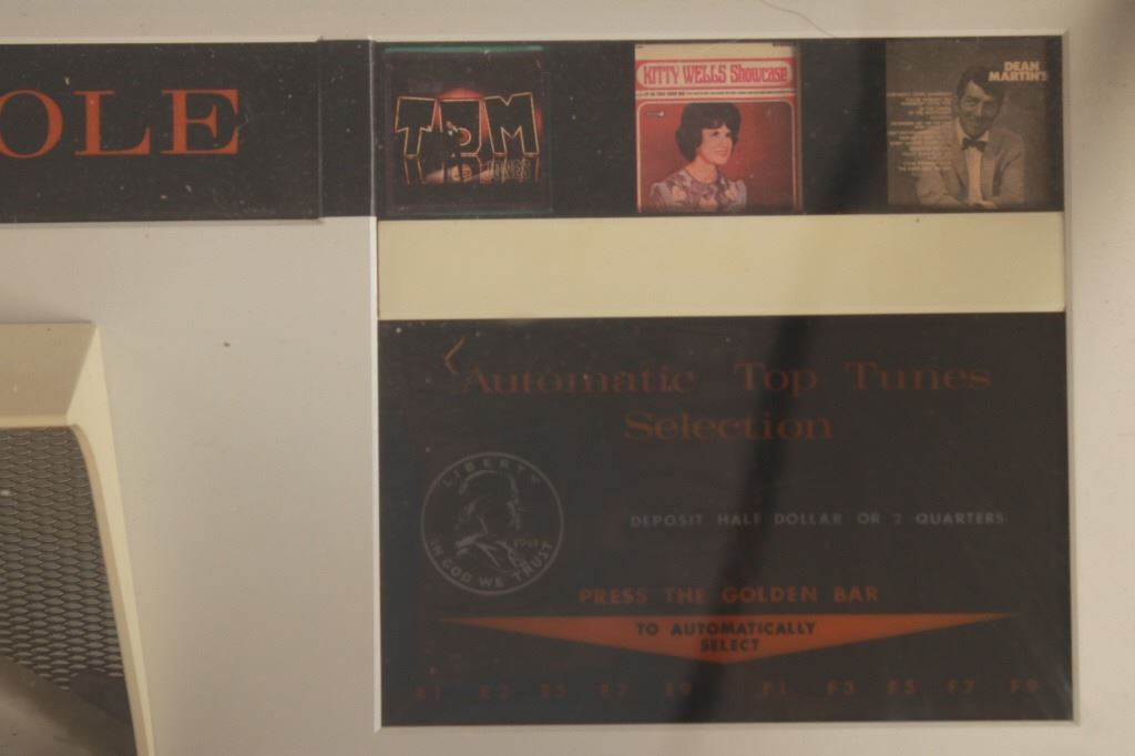 For your consideration is this beautiful, Wurlitzer Multi-Selector Phonograph Model 3010 circa 1966. The Wurlitzer 3010 jukebox was manufactured by the Wurlitzer Company in 1966 and was intended for use in public spaces. The Wurlitzer 3010 jukebox has a coin mechanism that accepts nickels, dimes, and quarters, allowing customers to pay for their music choices. The model 3010 held one-hundred 33 or 45 rpm records and used a spinning carousel mechanism to store and retrieve them. The front of the model 3010 features a crystal glass panel with the name, "Wurlitzer" in black lettering on it. A nice, perforated metal grille screen, protected by highly polished stainless steel bars offers a striking contrast, adding to its beauty. The top piece dome features twin tweeters that are mounted at a convenient listening height while the lower level features all the necessary play directions in colorful, yet orderly fashion. The left hand buttons are lettered A through K, while the set of buttons on the right hand side are numbered 1 through 9 (including 0) for picking your song of choice. The sides are constructed of panelyte, giving a magnificent mar-resistant melamine finish of deep rosewood grain. Behind the glass it shows rows of song selections and their corresponding numbers and letters used to choose them. The left side reads, "Little LP Album Music" and explains how you can play a half album or full album, while the right hand side reads, "Automatic Top Tunes Selection" which would play the top hits at the time by pressing the "Golden Bar" button. The back of the machine shows a small tag with the company name, patent numbers and dates, model number and serial number (675183). This machine has not been tested for working order. It shows good condition overall despite its age and use over the years with little wear present. No major signs of damage is noted. Interior components not checked. The machine measures 27 1/8" L x 35 1/4" W x 53" H.