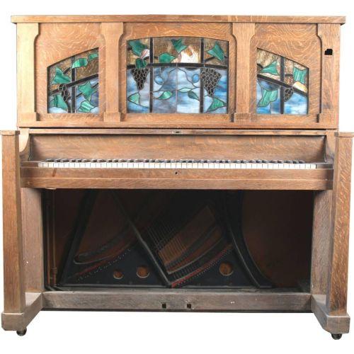 Wurlitzer Model "S" Upright Nickelodeon in Tiger Oak (Missing all other instruments except Piano bottom door also missing) Has all the Original Stained Glass