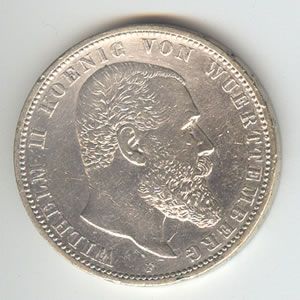 Wurttemburg (Germany) 5 mark 1892-1913 (KM632) **|**|** Wurttemburg (Germany) 5 mark 1892-1913 (KM632) ; MSRP: $110