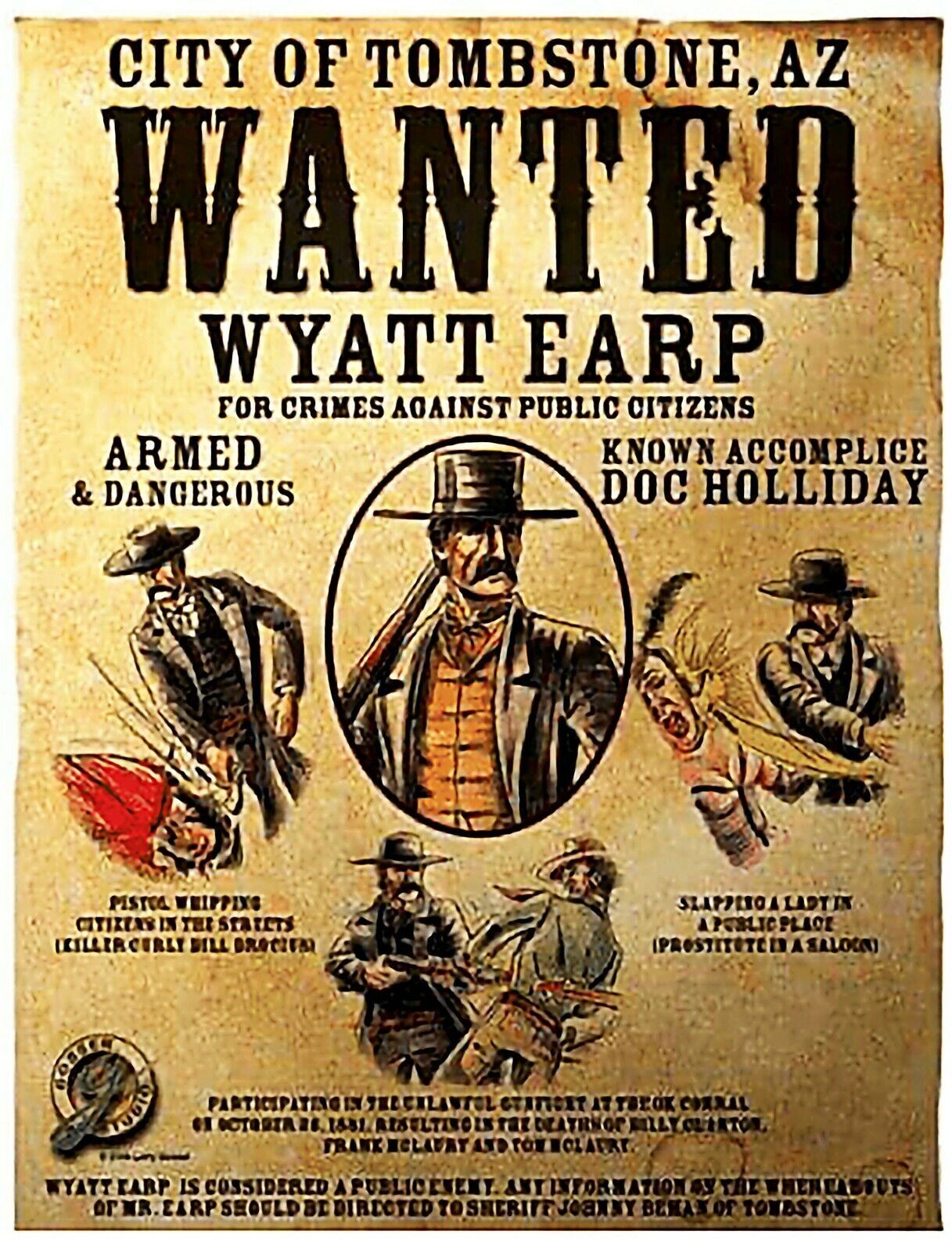 Wyatt Berry Stapp Earp was an American lawman and gambler in the American West, including Dodge City, Deadwood, and Tombstone. Earp was involved in the famous gunfight at the O.K. Corral, during which lawmen killed three outlaw Cochise County Cowboys. 8 x 10 inch