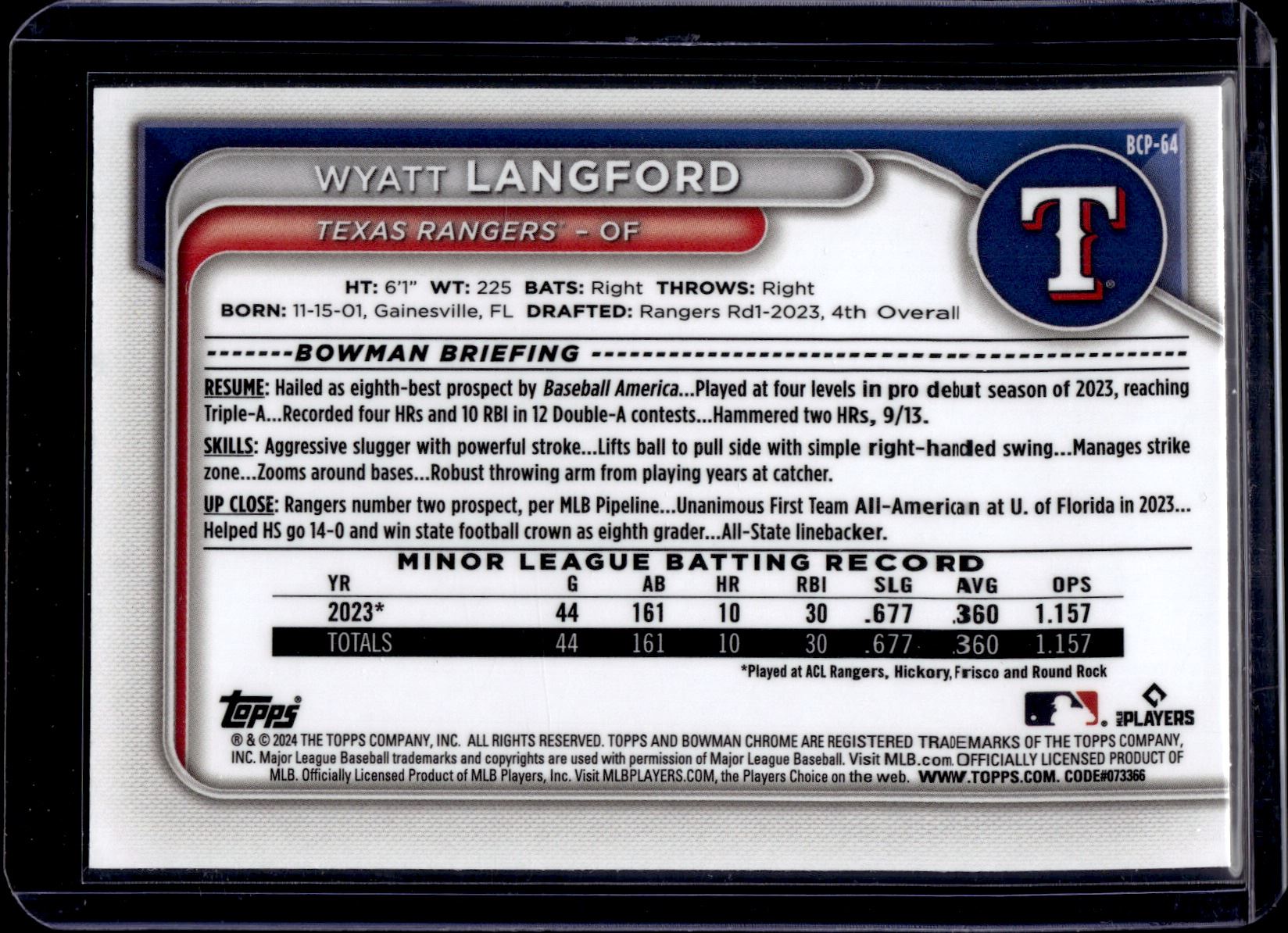 Wyatt Langford Pink Fuchsia Refractor /299 2024 Bowman Chrome #BCP-64