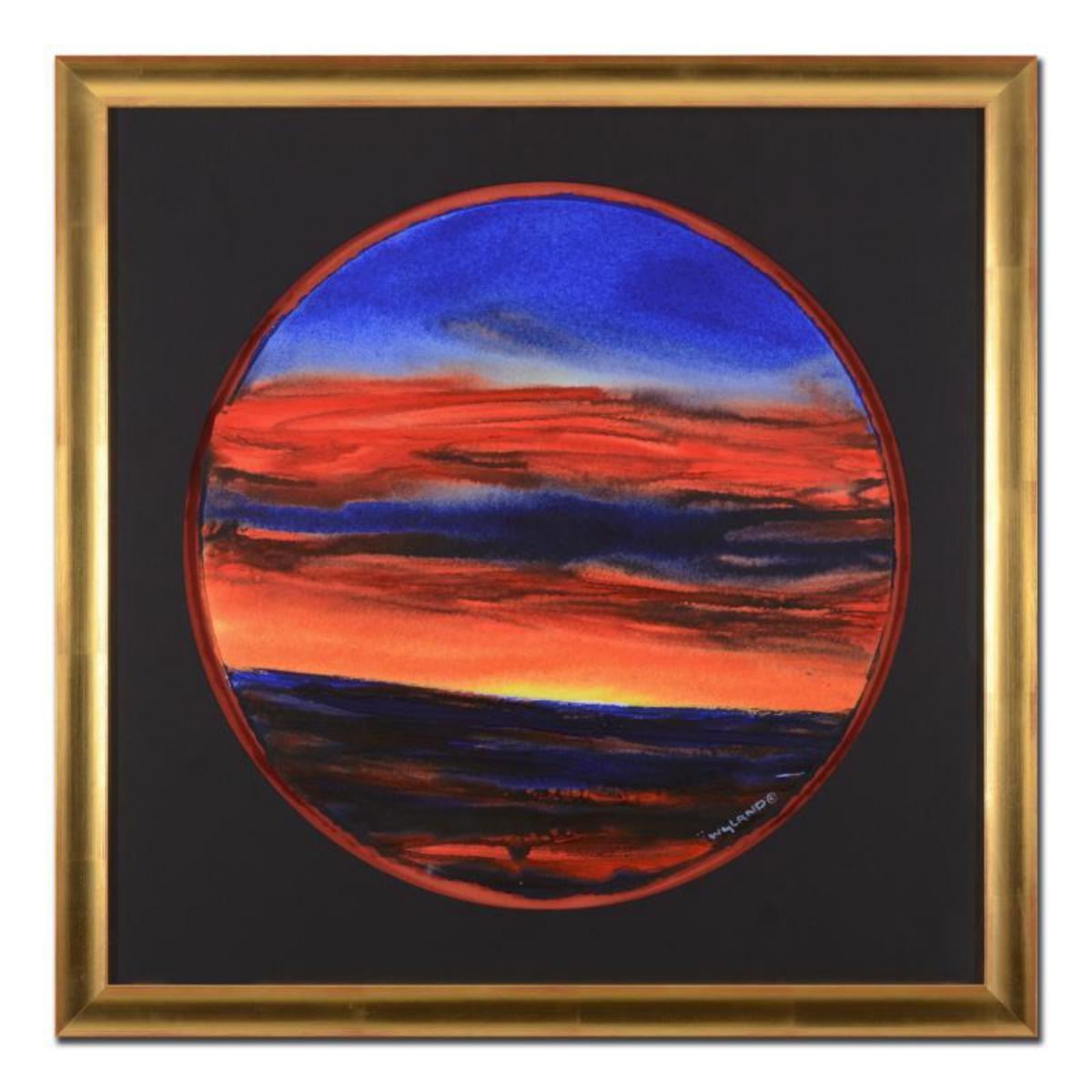"Abstract" is an original watercolor painting on round cut deckle edge paper by Wyland, hand signed by the artist. This piece is custom framed. Includes Certificate of Authenticity. Measures approx. 28" x 28" (frame), 19" (image diameter). Reference #: 226114