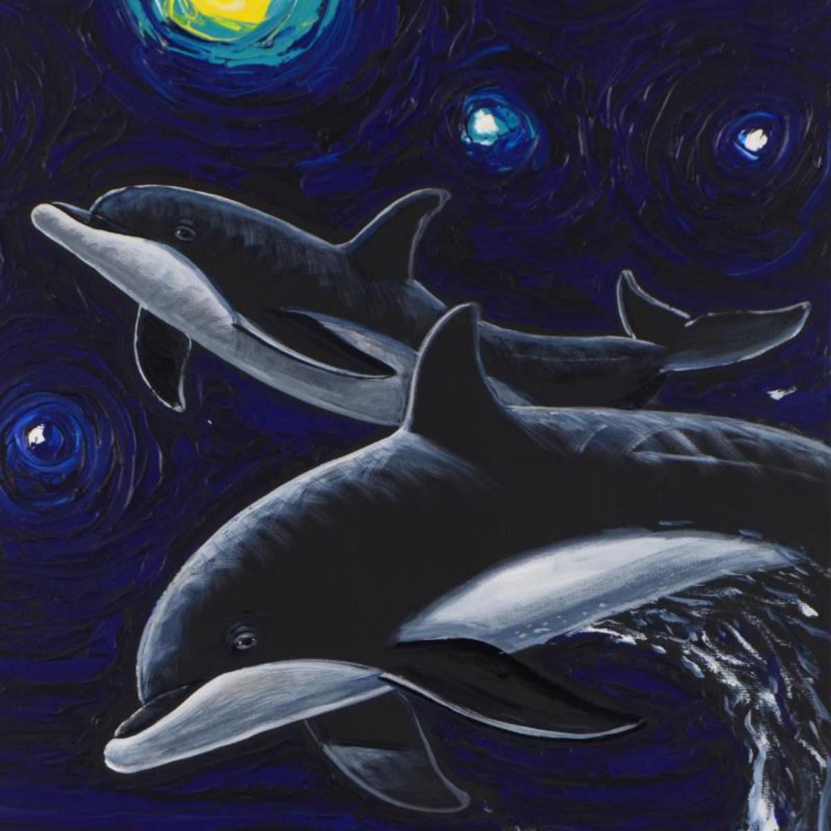 Wyland, "Companions In the Starry Sea" Original Oil Painting on Canvas, Hand Signed with Certificate