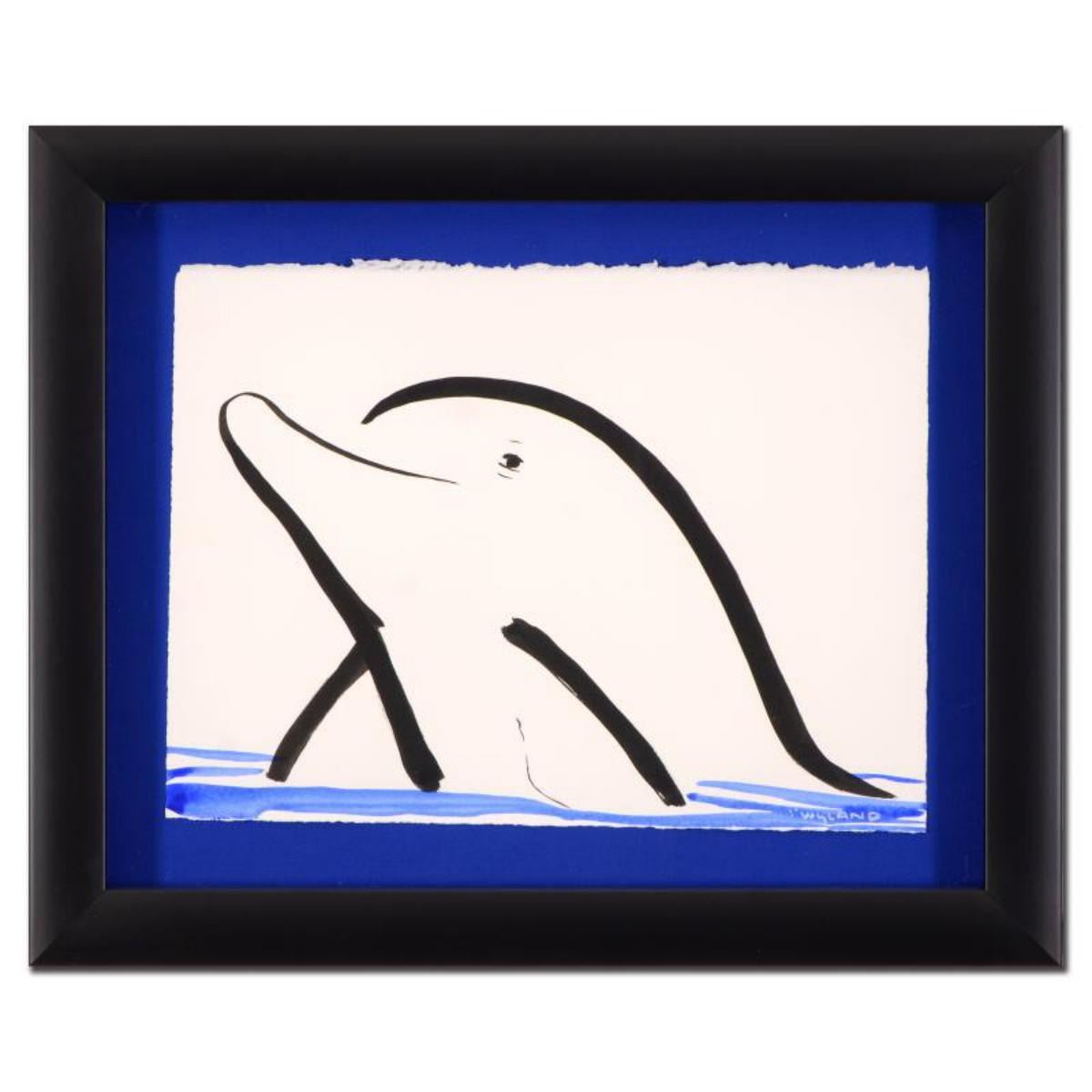 "Dolphin" is an original sumi ink and watercolor painting on deckle-edge paper by Wyland, hand signed by the artist. This piece is custom framed. Includes Certificate of Authenticity. Measures approx. 20" x 16.5" (with frame); 15" x 10" (image). Reference #: 224459
