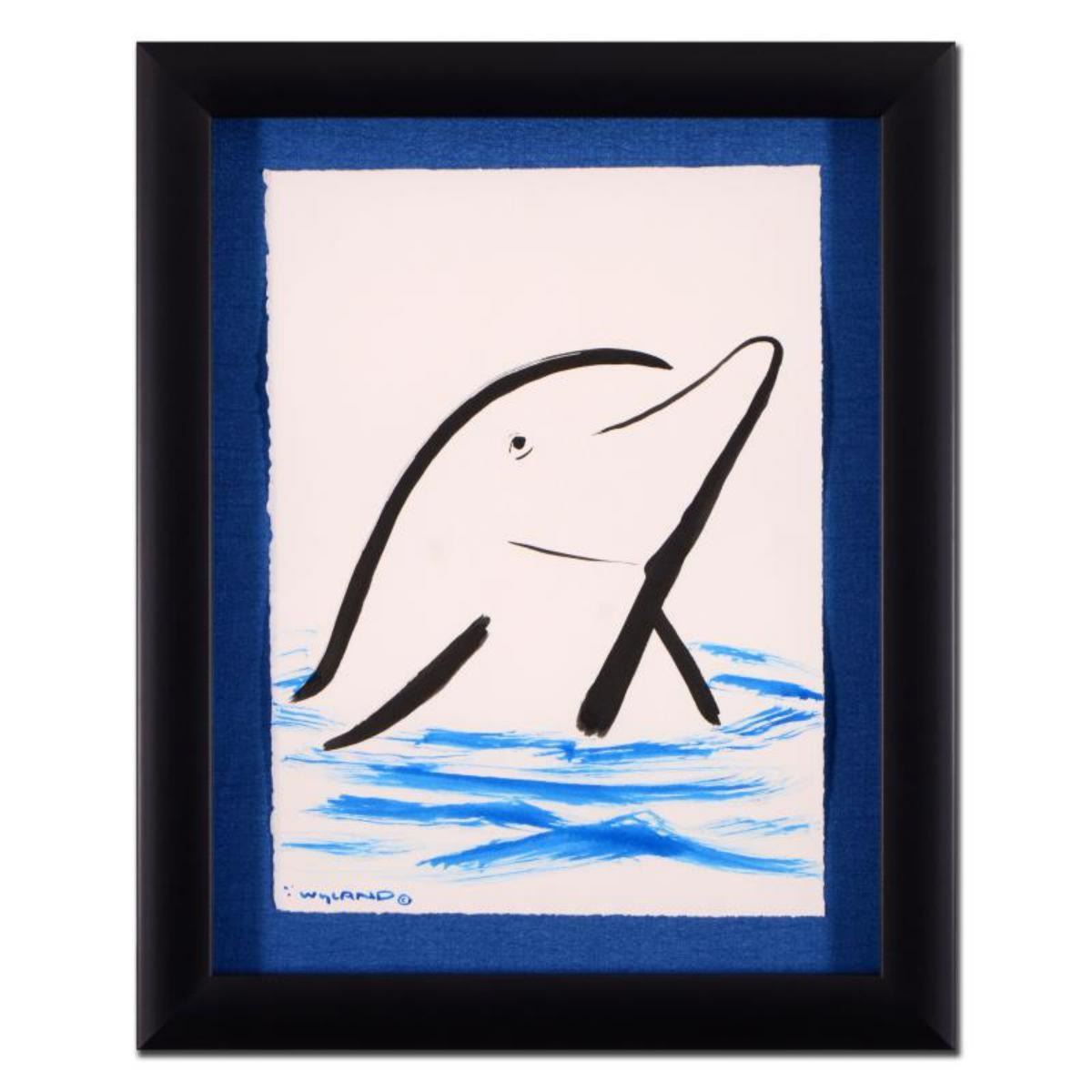 "Dolphin" is an original sumi ink and watercolor painting on deckle-edge paper by Wyland, hand signed by the artist. This piece is custom framed. Includes Certificate of Authenticity. Measures approx. 16.5" x 20" (with frame); 10" x 15" (image). Reference #: 224449