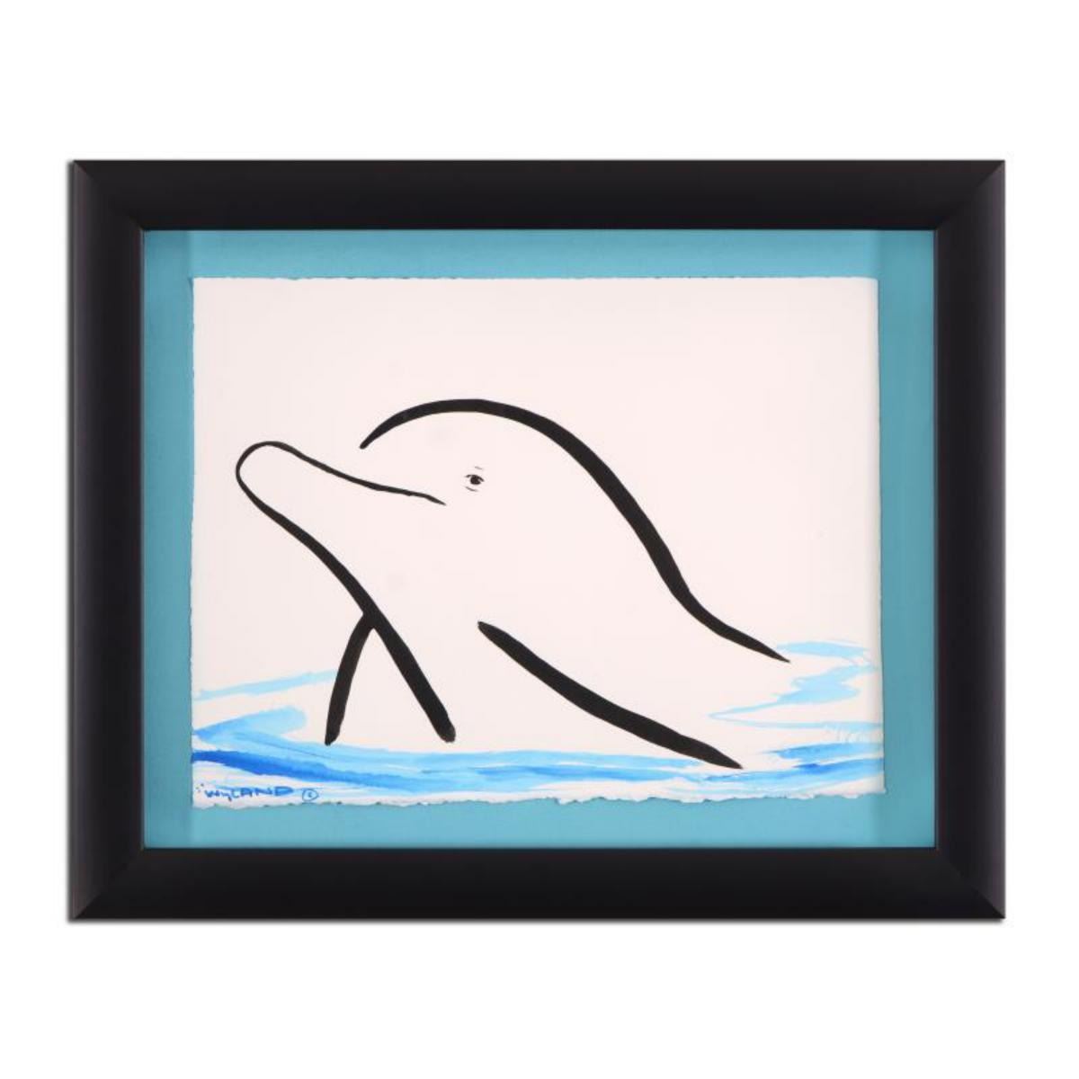 Wyland - "Dolphin" Framed Original Watercolor Painting, Hand Signed with Certificate of Authenticity