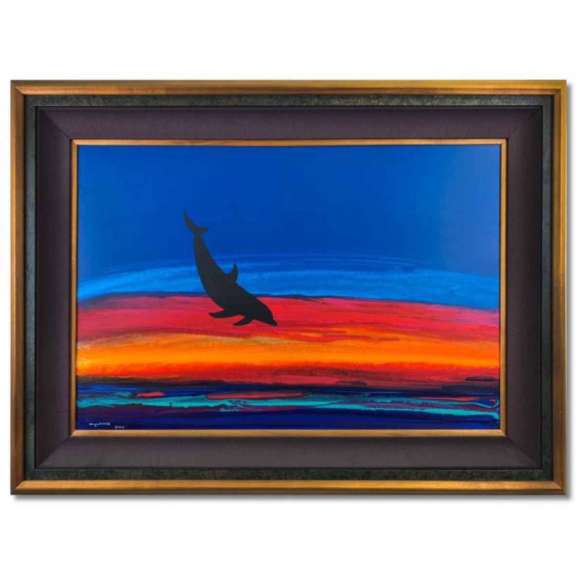 Wyland, "Dolphin Rising" Hand Signed Original Painting on Board with Certificate of Authenticity.