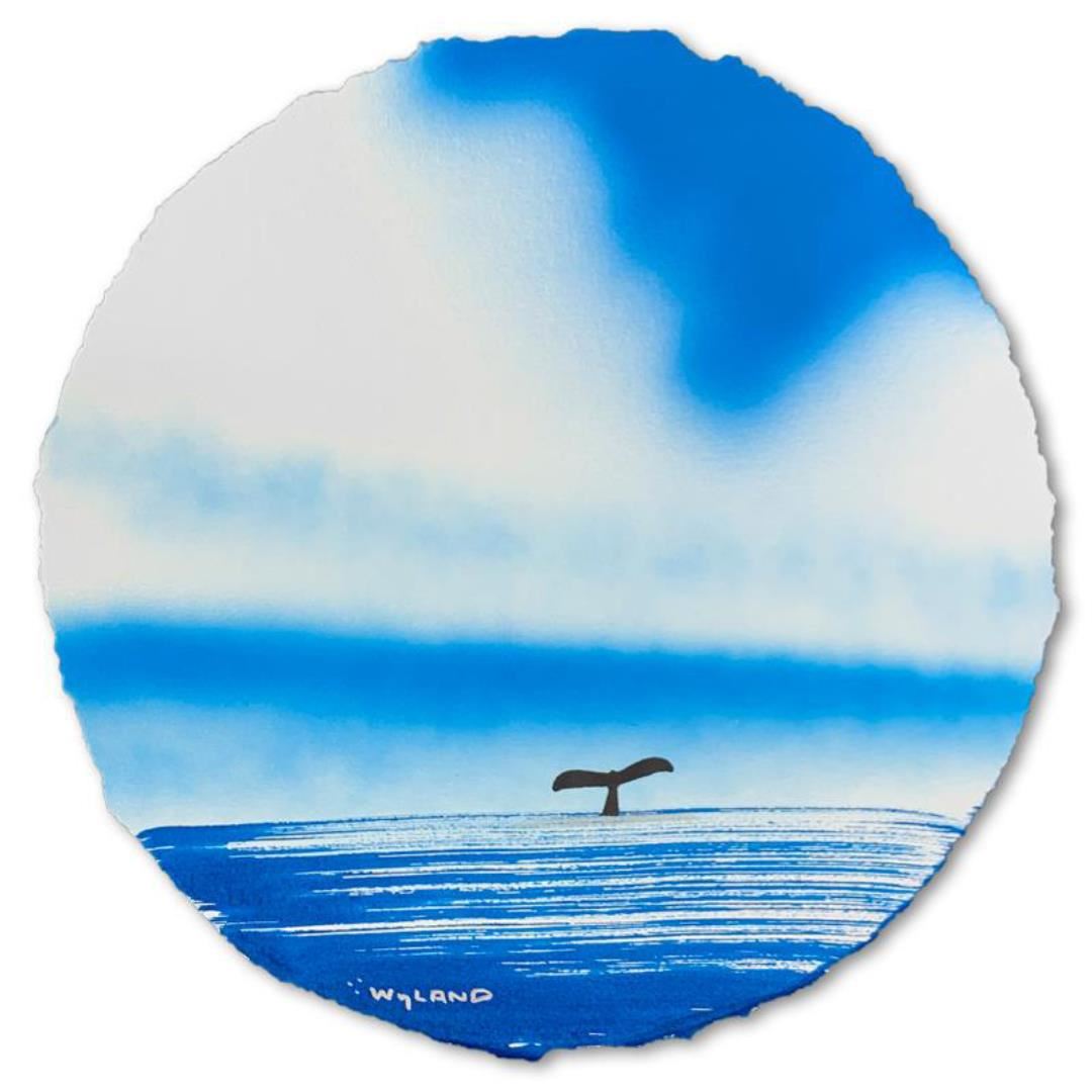 "Fluke" is an original painting, watercolor on deckle edge paper by Wyland. Hand signed by the artist, the piece comes custom framed and with a letter of authenticity. Measures approximately 30" x 30" (framed), 19.5" x 19.5" (image).