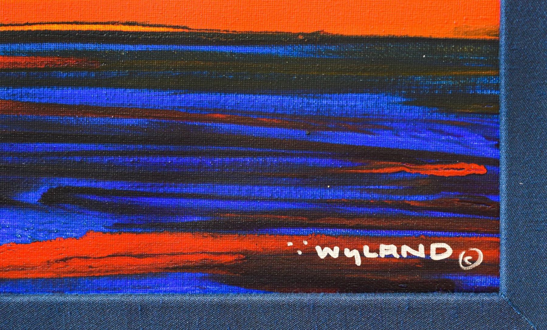 Artist: Wyland. Medium: Original Painting on Canvas. Title: Whale Tale Over Sunrise. Size (Unframed): 18.5" x 16.5". Size (Framed): 27" x 25". Certificate of Authenticity: Is included. Additional: Custom framed. Reference# 15798.