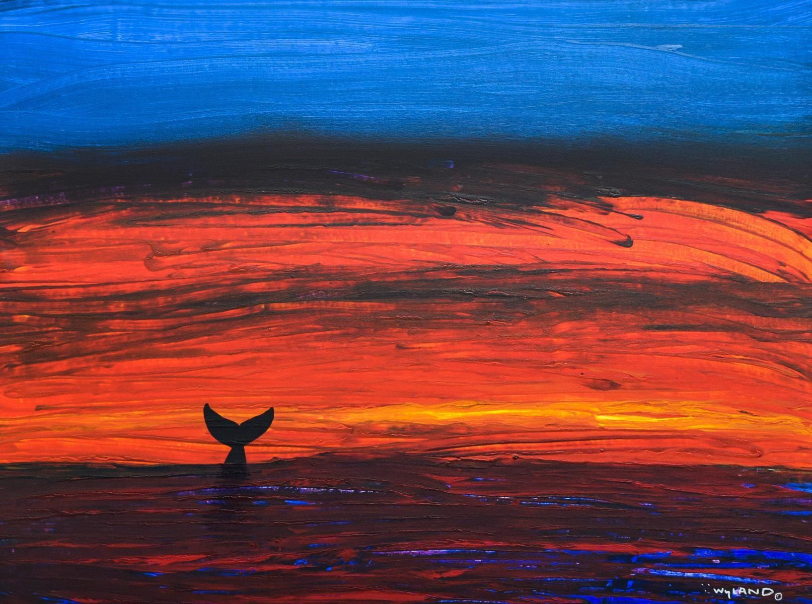 Artist: Wyland. Medium: Original Painting on Canvas. Title: Whale Tale. Size (Unframed): 37" x 49". Size (Framed): 46" x 58". Certificate of Authenticity: Is included. Additional: Custom framed. Reference# 16080.