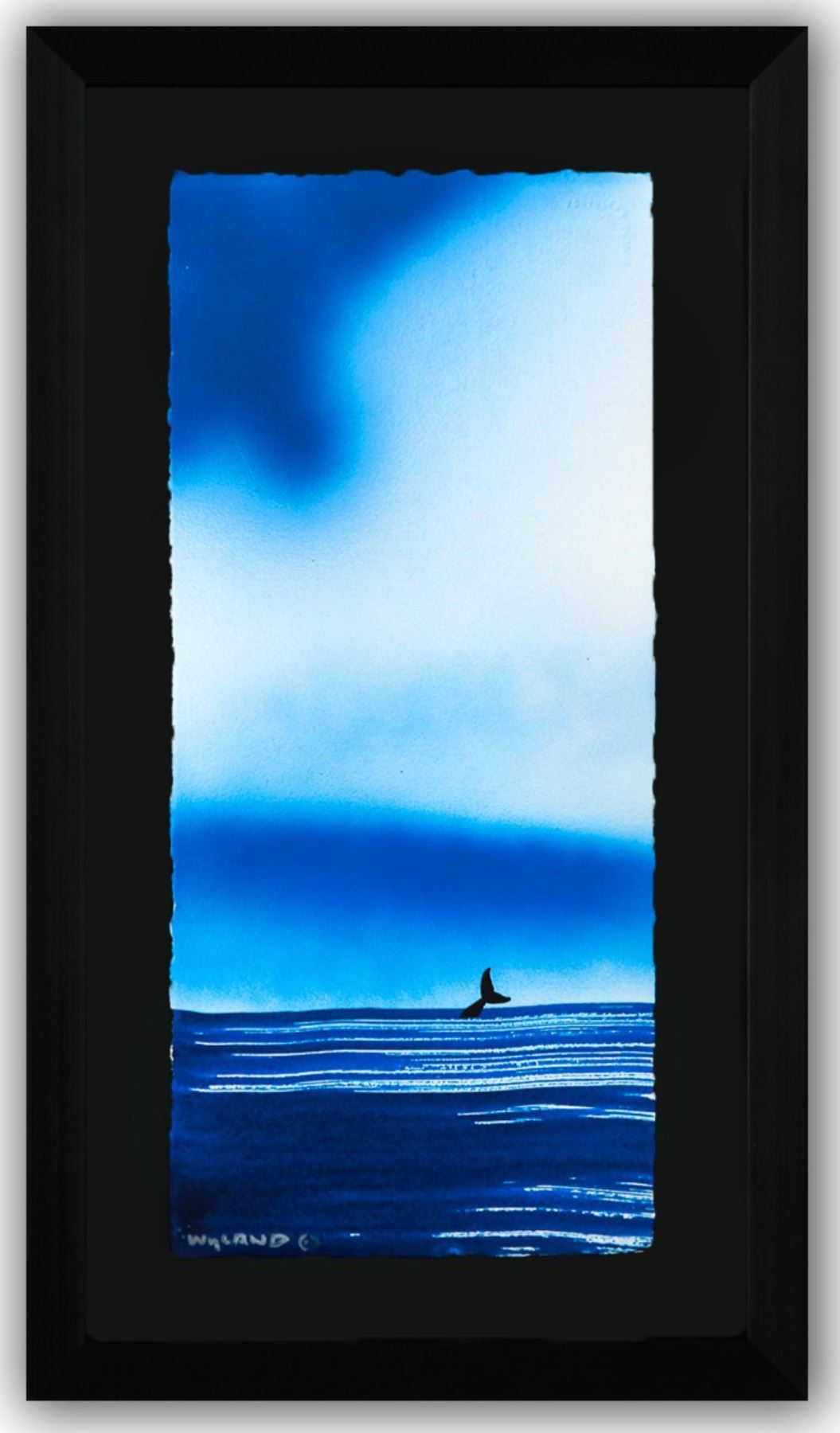 Artist: Wyland. Medium: Original Watercolor Painting on Deckle Edge Paper. Title: Fluke. Size (Unframed): 22" x 10". Measures approx. (Framed): 28" x 16". Certificate of Authenticity: Is included. Additional: Custom framed. Reference# 17709.