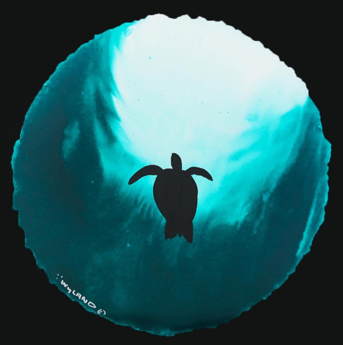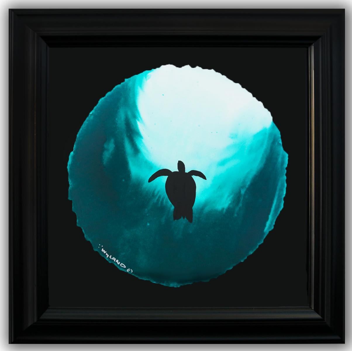 Artist: Wyland. Medium: Original Watercolor Painting on Deckle Edge Paper. Title: Turtle Flight. Size (Unframed): 19" x 19". Measures approx. (Framed): 30" x 30". Certificate of Authenticity: Is included. Additional: Custom framed. Reference# 17366.