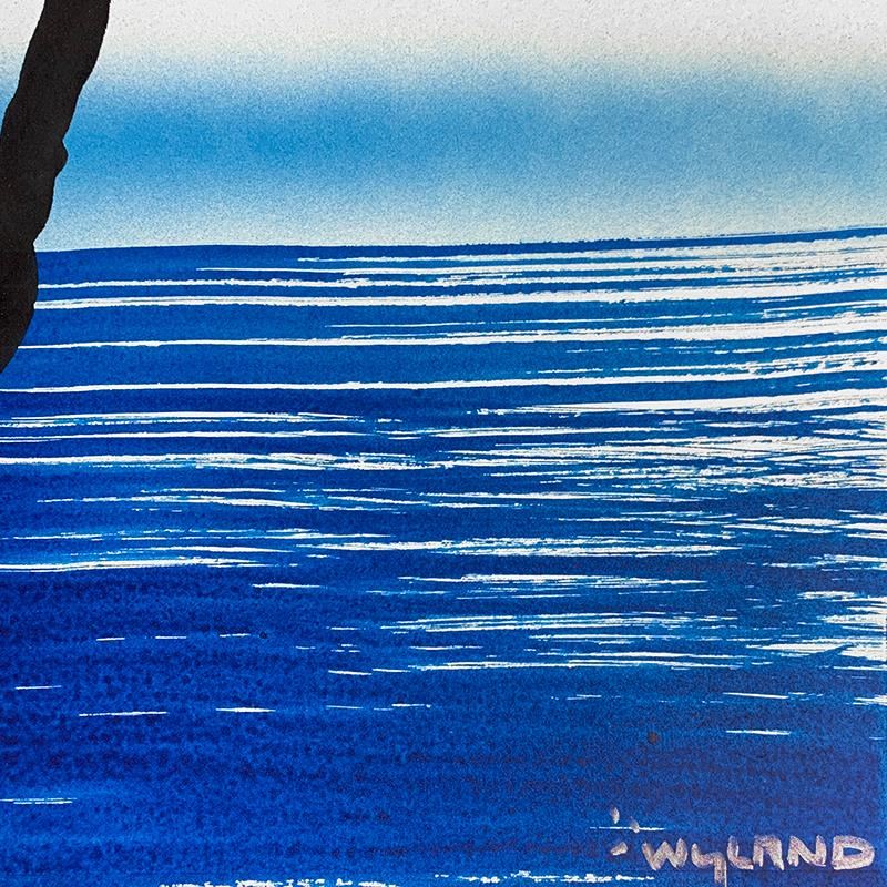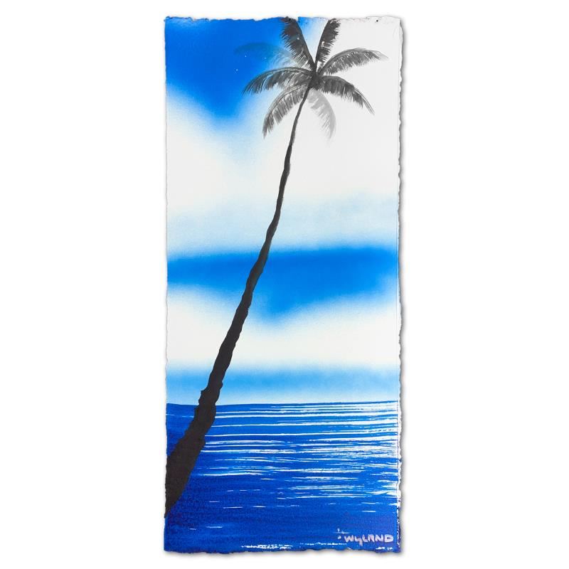 "Palm Trees" is an original painting acrylic on deckle edge paper by Wyland. Hand signed by the artist, the piece comes custom framed and with a letter of authenticity. Measures approximately 26.5" x 14.5" (framed), 22.5" x 10.5" (image). This item requires special handling and may have a longer than usual turnaround