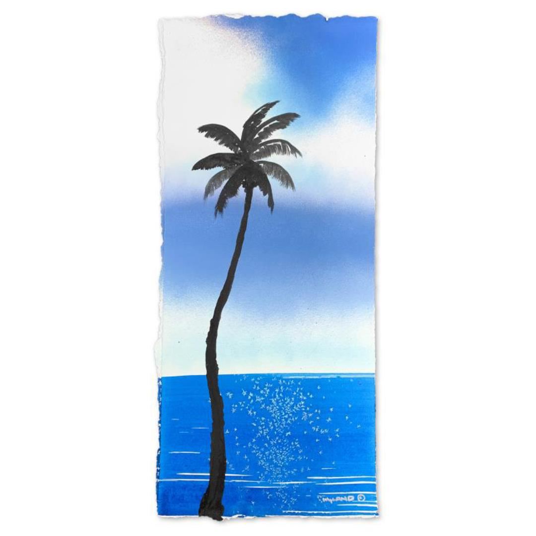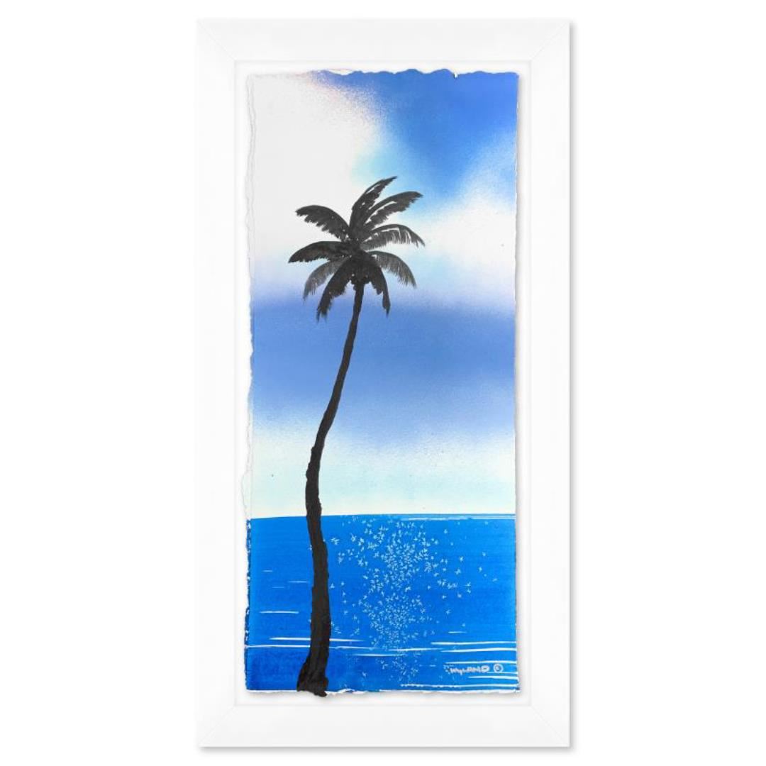 "Palm Trees" is an original painting acrylic on deckle edge paper by Wyland. Hand signed by the artist, the piece comes custom framed and with a letter of authenticity. Measures approximately 26.5" x 14.5" (framed), 22.5" x 10.5" (image). This item requires special handling and may have a longer than usual turnaround