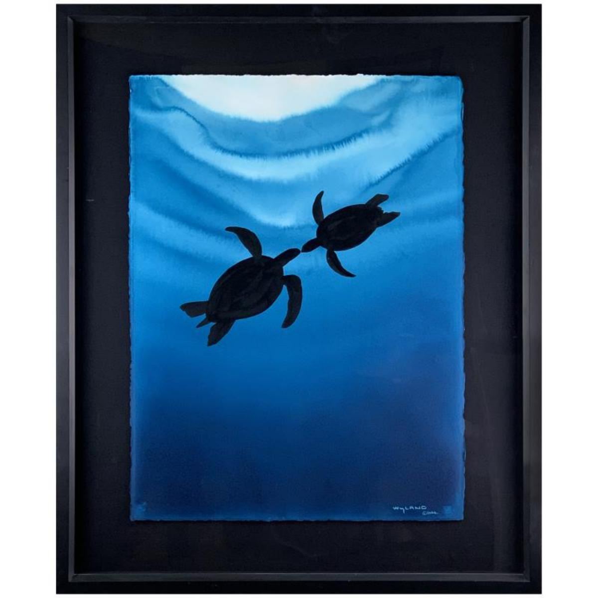 "Reef Kiss" is an original watercolor painting on deckle-edge paper by Wyland, hand signed by the artist and with Certificate of Authenticity. The frame is imperfect with moderate wear. Measures approximately 40" x 33" (framed), 30" x 23 (image). Reference #: 240381