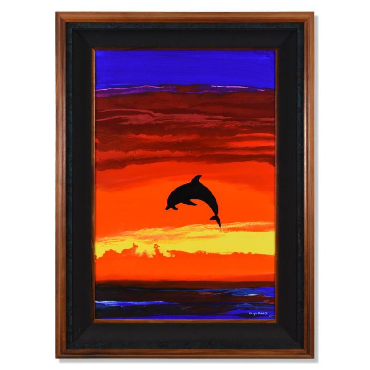 "Sacred Sea" is an original acrylic painting on board by Wyland, hand signed by the artist. This piece comes framed. Includes Letter of Authenticity. Measures approx. 33.5" x 45.5" (framed), 23.5" x 35.5" (image). There is minor wear on the frame. Reference #: 249886