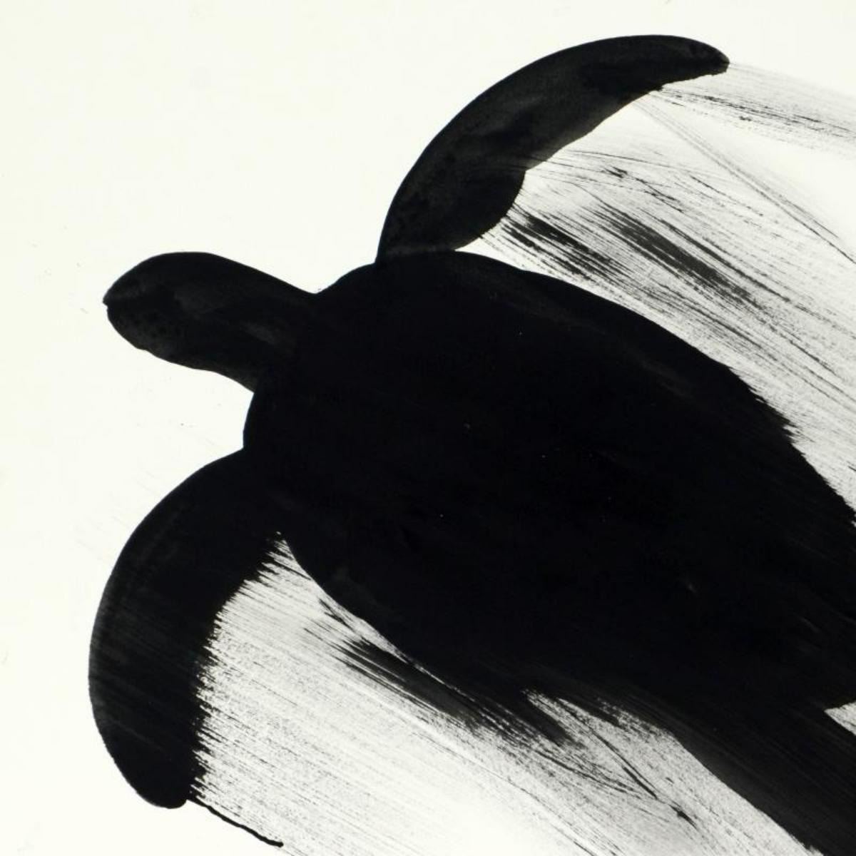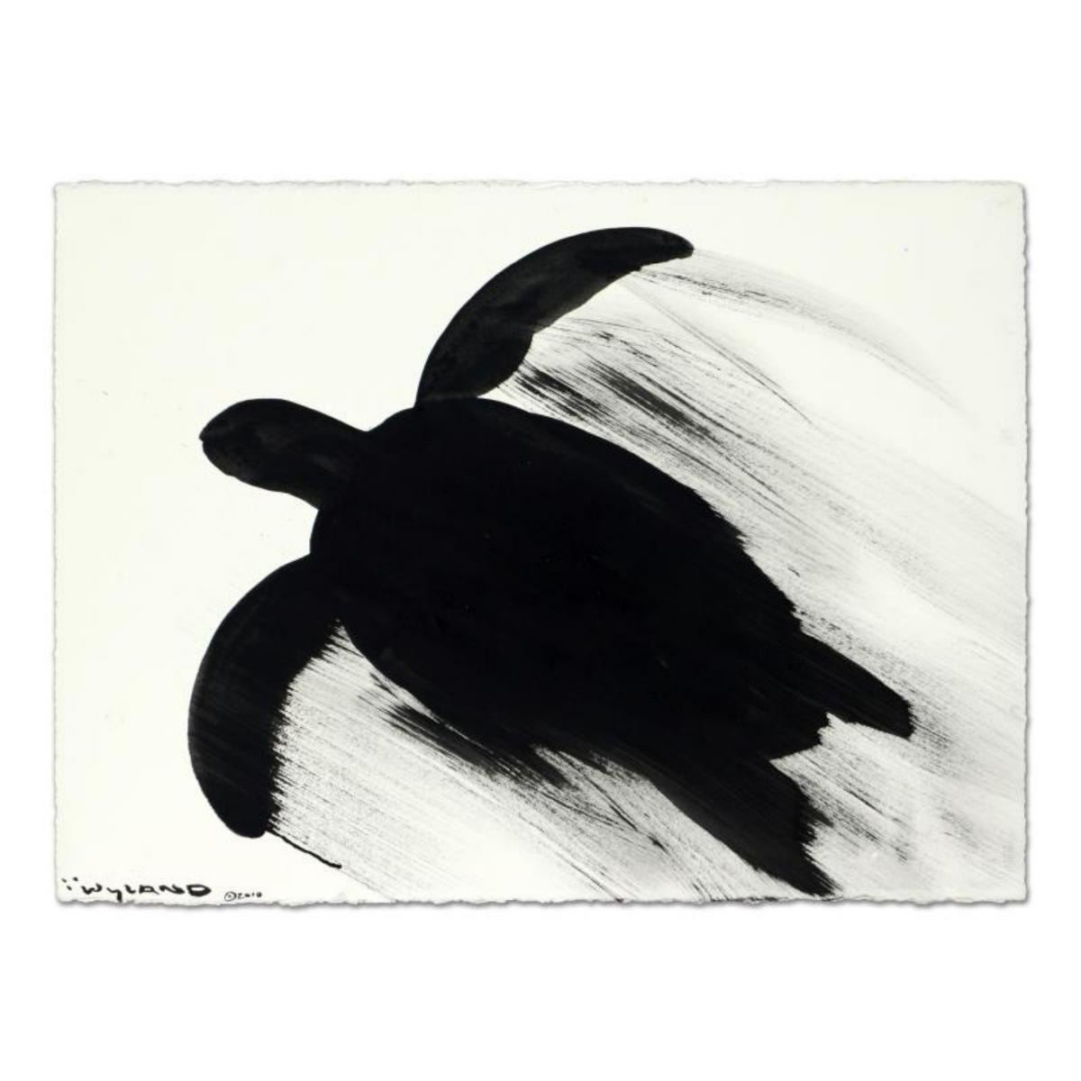 Wyland, "Silhouette Motion Turtle" Original Sumi Ink Painting, Hand Signed with Certificate of Authe