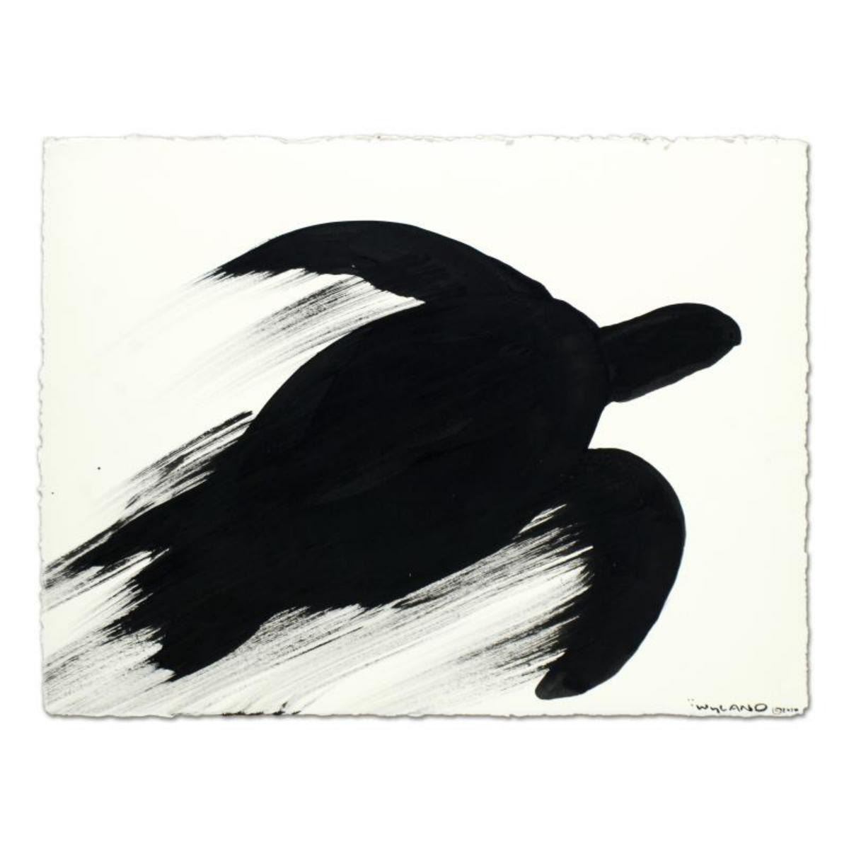 Wyland, "Silhouette Motion Turtle" Original Sumi Ink Painting, Hand Signed with Certificate of Authe