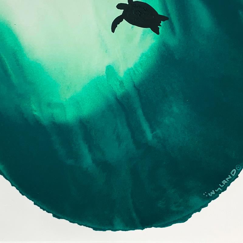 "Swimming to the Surface" is an original painting, watercolor on deckle edge paper by Wyland. Hand signed by the artist, the piece comes custom framed and with a letter of authenticity. Measures approximately 30" x 30" (framed), 19.5" x 19.5" (image).