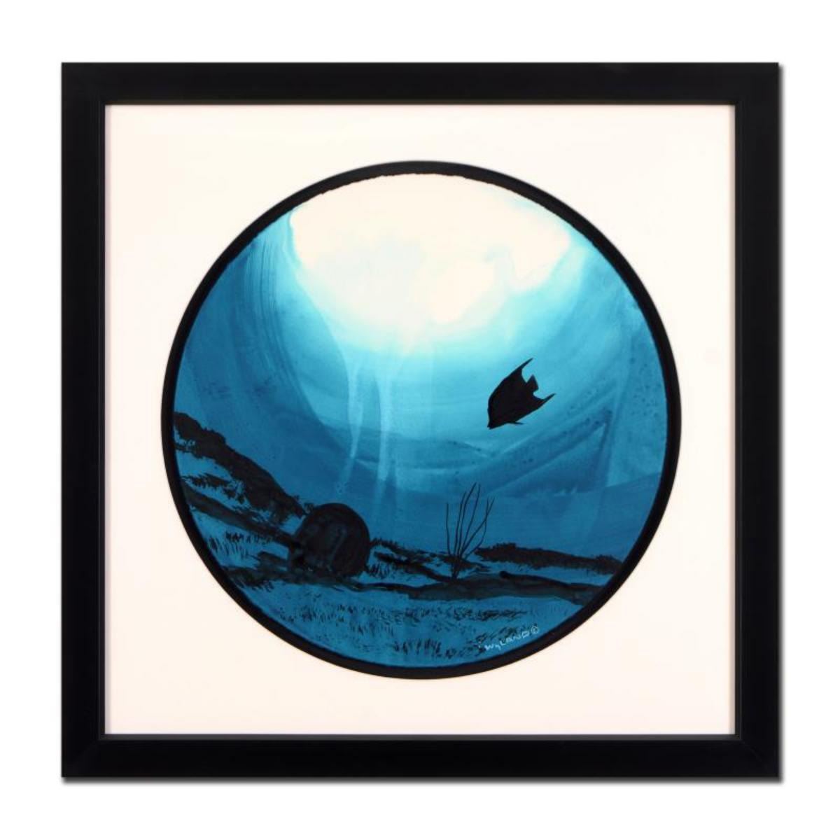"Tropical Fish" is an original watercolor painting on round cut deckle edge paper by Wyland, hand signed by the artist. This piece is custom framed. Includes Certificate of Authenticity. Measures approx. 28.5" x 28.5" (frame), 19" (image diameter). Reference #: 226098