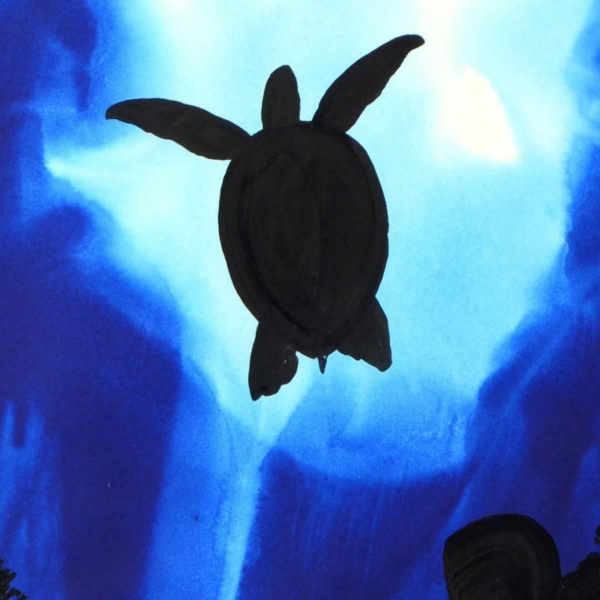 Wyland -Turtle (Blue) Framed Original Watercolor Painting, Hand Signed with Certificate!