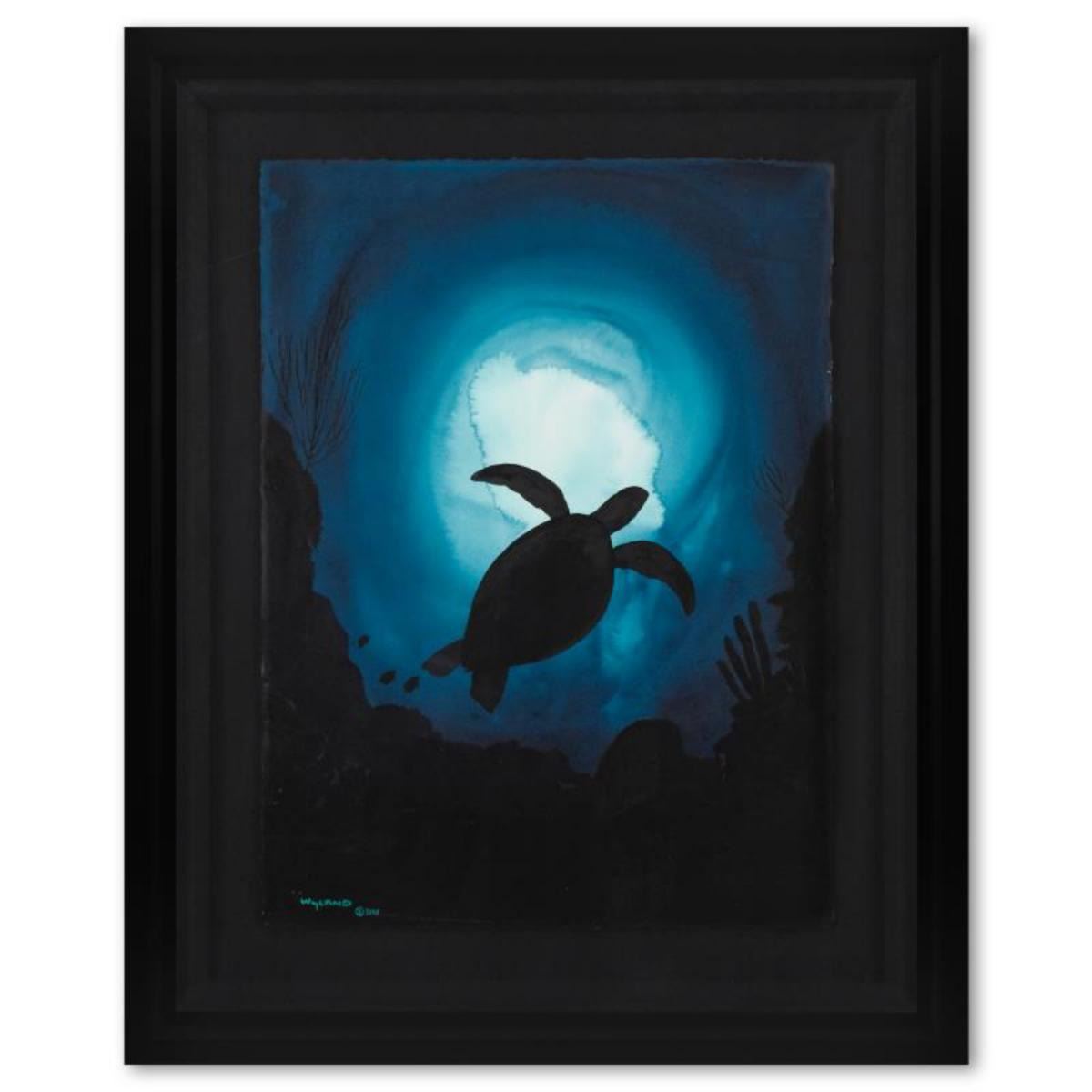 Wyland, "Turtle Reef Silhouette" Framed Original Watercolor Painting Hand Signed with Letter of Auth