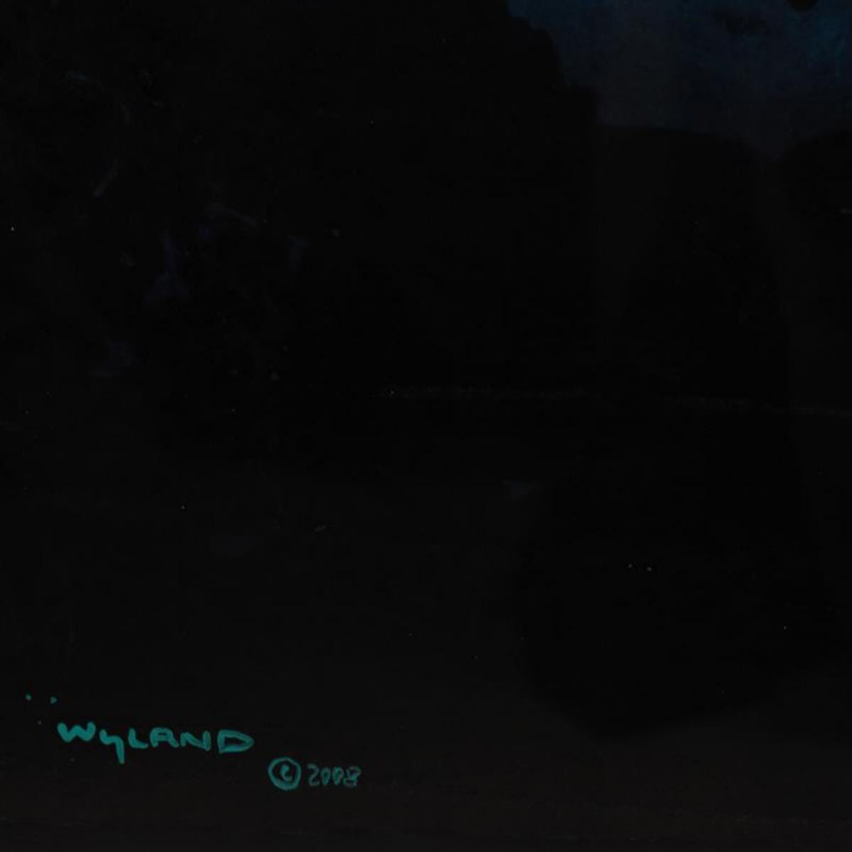 "Turtle Reef Silhouette" is an original watercolor painting on deckle edge paper by Wyland, hand signed by the artist. This piece comes framed. Includes Letter of Authenticity. Measures approx. 33" x 41.5" (framed), 22.5" x 30" (image). There is minor wear on the corners and edges of the frame and some scratches on the acrylic protective cover. Reference #: 249897