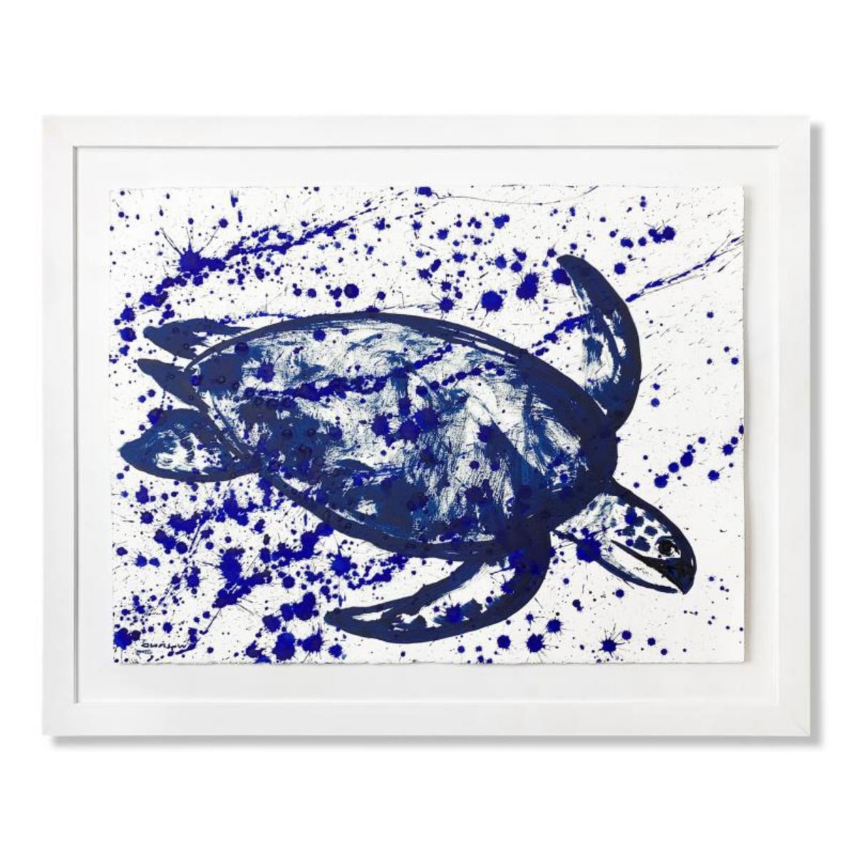 "Turtle Splash" is an original watercolor painting on deckle edge paper by Wyland, hand signed by the artist. Includes Letter of Authenticity. Measures approximately 30" x 37" (framed), 22.5" x 29" (image). This item requires special handling and may have a longer than usual turnaround. Reference #: 247761