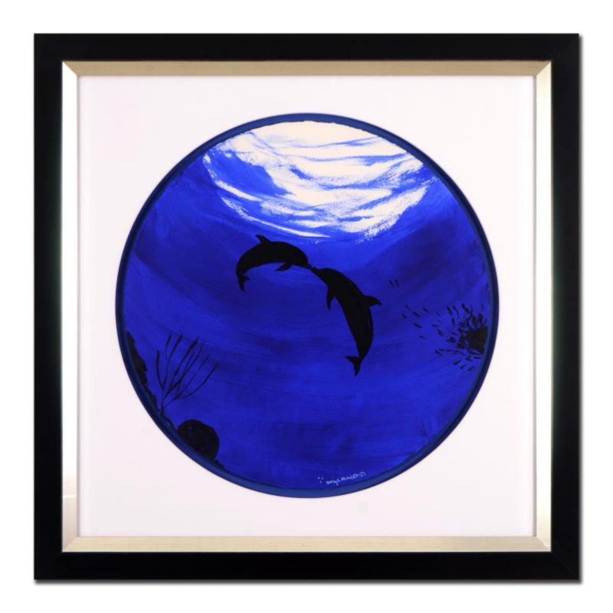 Wyland, "Two Dolphins" Framed Original Watercolor Painting, Hand Signed with Certificate of Authenti
