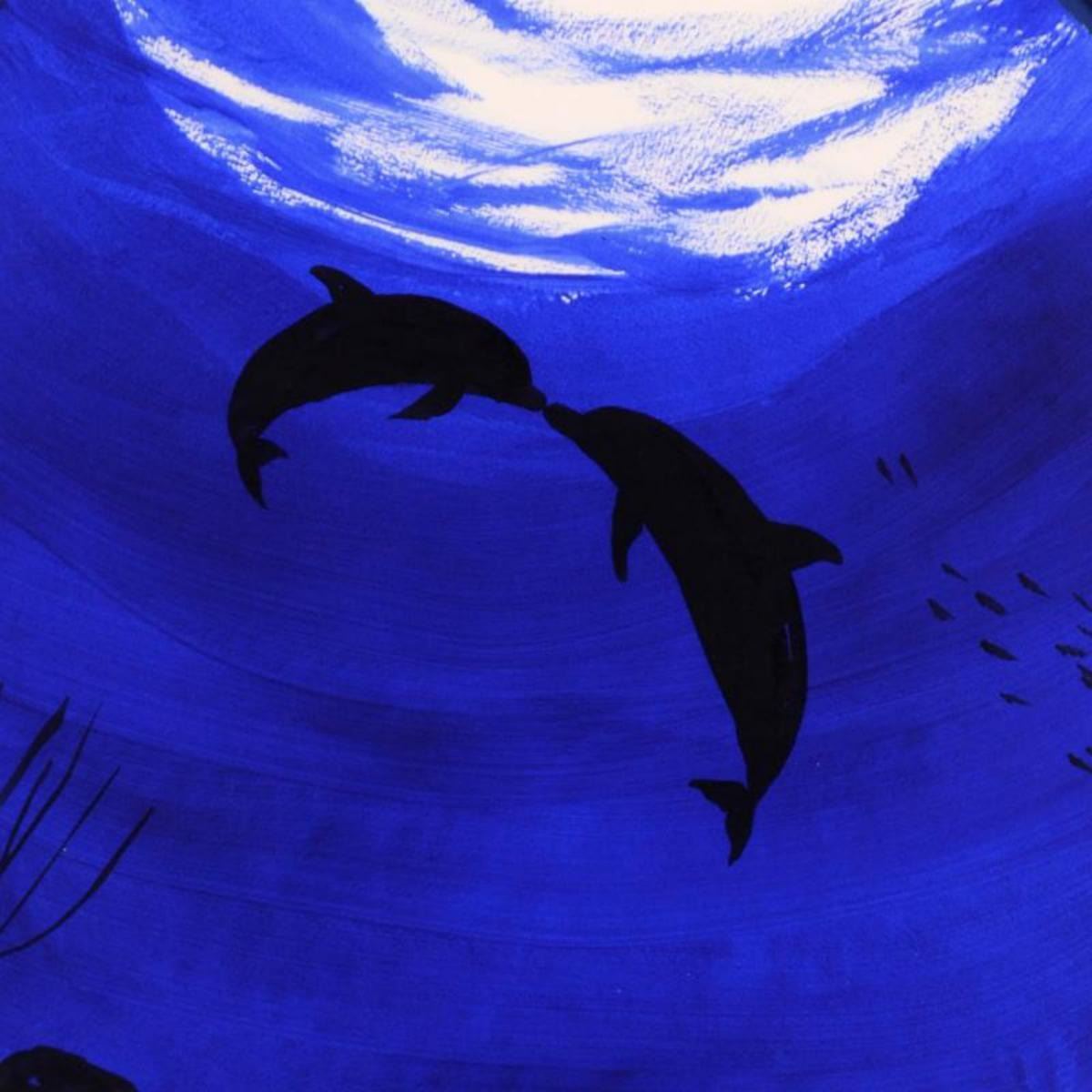 "Two Dolphins" is an original watercolor painting on round cut deckle edge paper by Wyland, hand signed by the artist. This piece is custom framed. Includes Certificate of Authenticity. Measures approx. 29" x 29" (frame), 19" (image diameter). Reference #: 226111