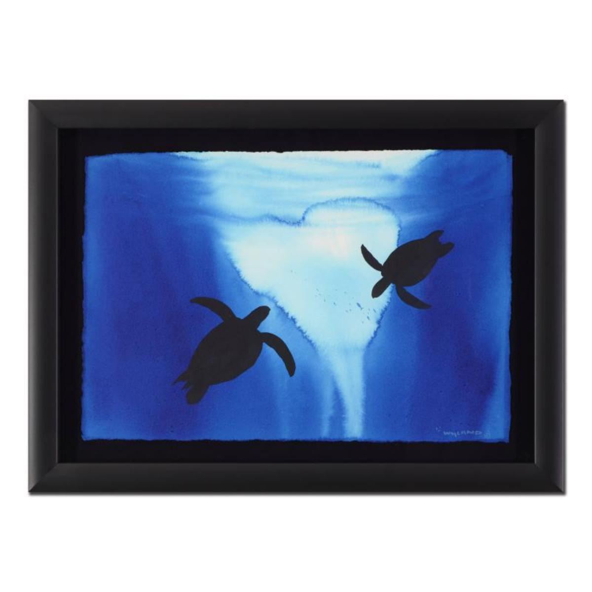 "Two Turtles" is an original watercolor painting on deckle-edge paper by Wyland, hand signed by the artist. This piece is custom framed. Includes Certificate of Authenticity. Measures approx. 28" x 20.5" (with frame); 22" x 16" (image). Reference #: 224483