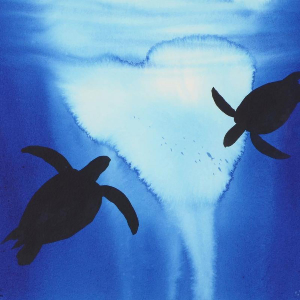 Wyland, "Two Turtles" Framed Original Watercolor Painting, Hand Signed with Certificate of Authentic