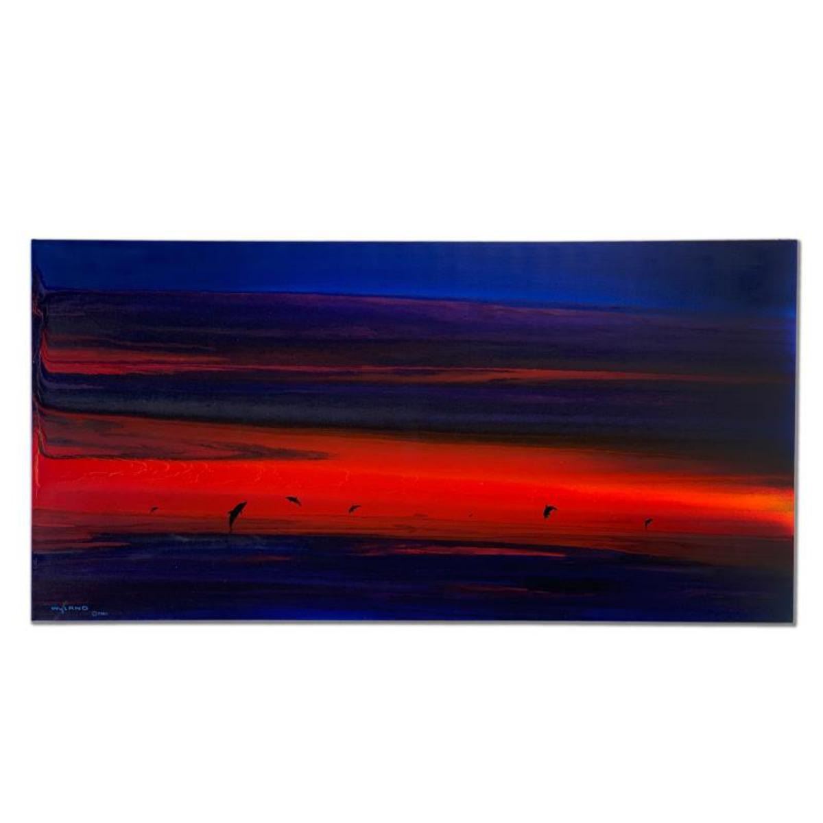 "Water Planet" is an original painting on stretched canvas by Wyland. Hand signed by the artist, this piece comes with a letter of authenticity. Measures approx. 24" x 48" (image). Reference #: 241511