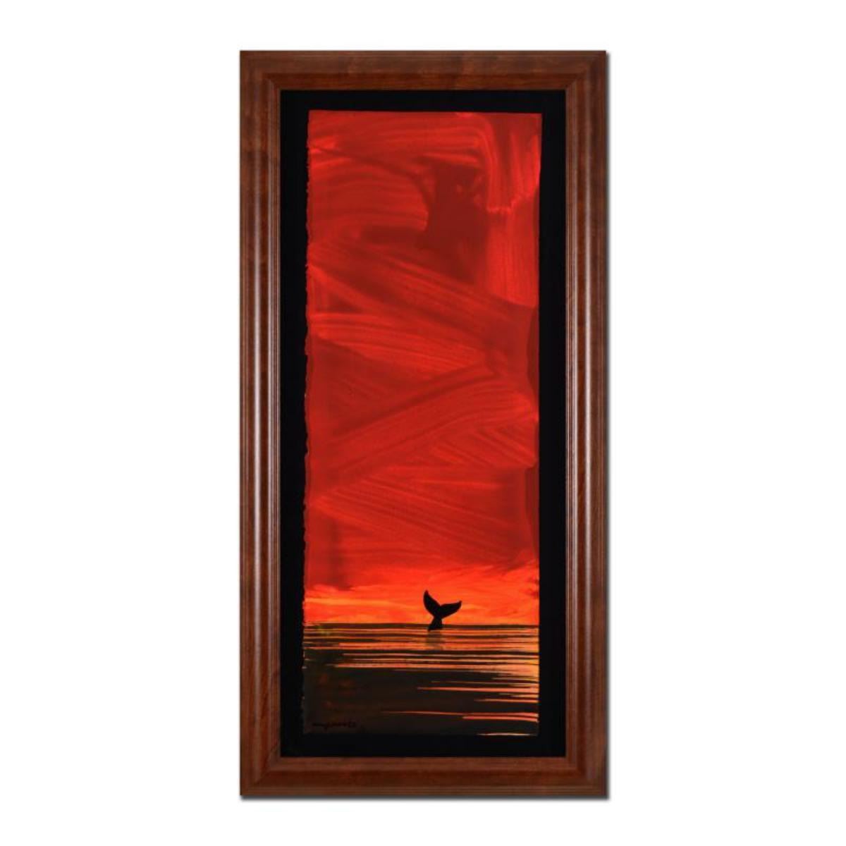 "Whale Tail" is an original watercolor painting on deckle-edge paper by Wyland, hand signed by the artist. This piece is custom framed. Includes Certificate of Authenticity. Measures approx. 17.5" x 36" (with frame); 11" x 30" (image). Reference #: 224532