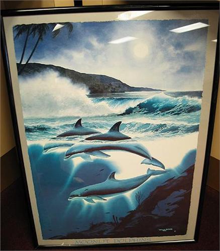 Wyland framed art print: Moonlit Dolphins unsigned. Measures 23 1/2 x 17"