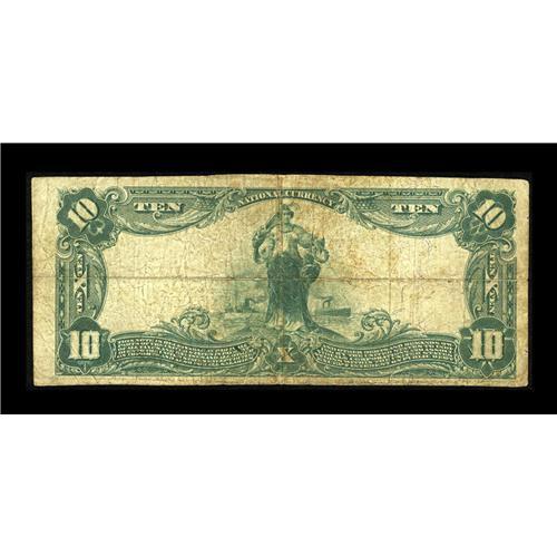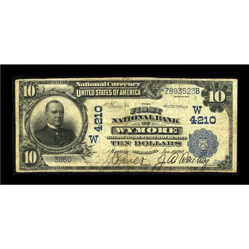<B>Wymore, NE</B></I> - $10 1902 Plain Back Fr. 627 <B>The First NB</B></I> Ch. # (W)4210<BR>Here is an old friend from our September 2000 auction. The signatures are dark, while there is a touch of graffiti to the right of President Reuling's signature. <B>About Fine.</B></I>