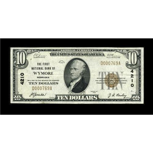 <B>Wymore, NE</B></I> - $10 1929 Ty. 1 <B>The First NB </B></I> Ch. # 4210<BR>Nice margins and bright paper highlight this <B>Very Fine-Extremely Fine</B></I> $10.